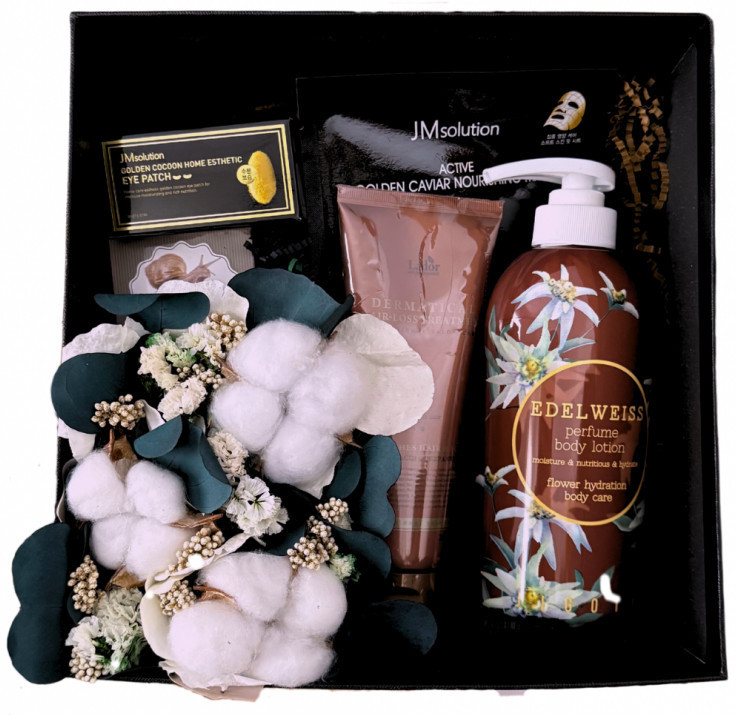 Парфюмированный лосьон для тела Jigott «Edelweiss»: water, glycerin, citric acid, stearic acid, linalool, limonene, citral, citronellol, potassium sorbate, caprylyl glycol, hydroxyethyl cellulose, phenoxyethanol, ethylenediaminetetraacetic acid, triethanolamine, hexyl cinnamal, coumarin, cetyl alcohol, soybean oil, sodium benzoate, glyceryl stearate, extract edelweiss, acacia extract, carbomer, alpha-isomethyl ionone, sodium nitrate, coconut water, polysorbate-60, butylhydroxytoluene, tapioca starch, sodium phosphate, fragrance.