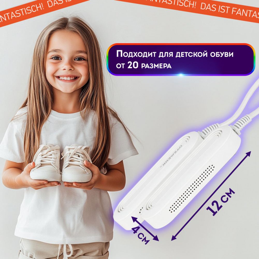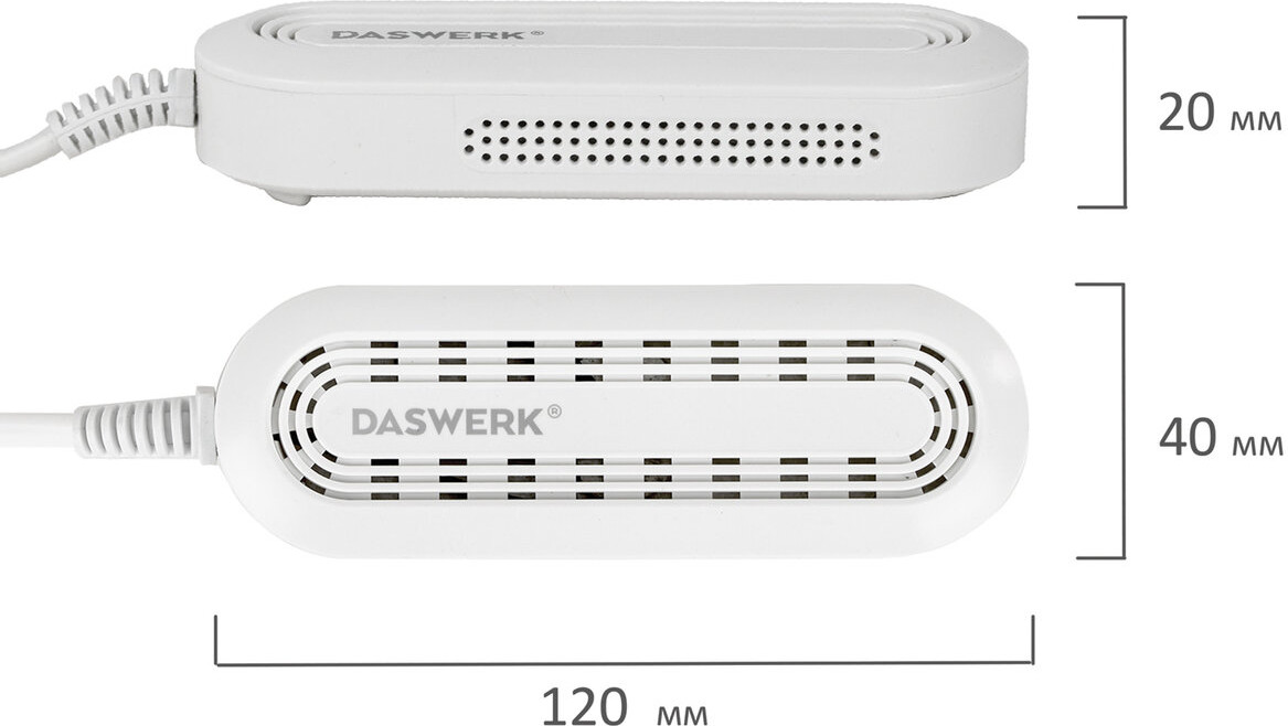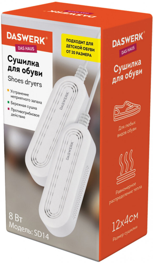 Благодаря компактному размеру 12×4 см сушилка Daswerk идеально подходит для детской обуви от 20 размера.