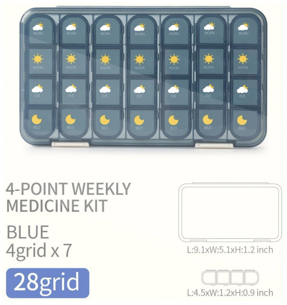 Представляем вам нашу функциональную таблетницу, созданную для удобного и безопасного хранения ваших медикаментов. Наша таблетница идеально подходит для тех, кто следит за своим здоровьем и хочет оптимизировать процесс приема лекарств. Таблетница имеет 28 отделений, изготовлена из высококачественного, нетоксичного пластика, который обеспечивает долговечность и защиту от внешних воздействий. Таблетница легко открывается, что позволяет быстро получить доступ к лекарствам, даже если у вас есть ограничения в движении. |