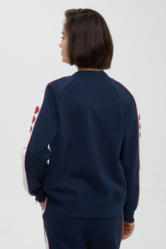 Толстовка на молнии из спортивной ретро-коллекции построена по оригинальным прототипам 70-х годов. Модель отличается выразительным дизайном: комбинация двух цветов на передней части изделия и контрастный кант выгодно подчеркивают силуэт. Благодаря сочетанию мягкого хлопкового трикотажа и болоньи толстовка не только отлично подходит для занятий спортом в прохладную погоду, но и в качестве легкой верхней одежды в теплый сезон. Модель хорошо сочетается с брюками из ретро-капсулы и удачно дополнит другие повседневные образы с джинсами, шортами и юбками в спортивном стиле.