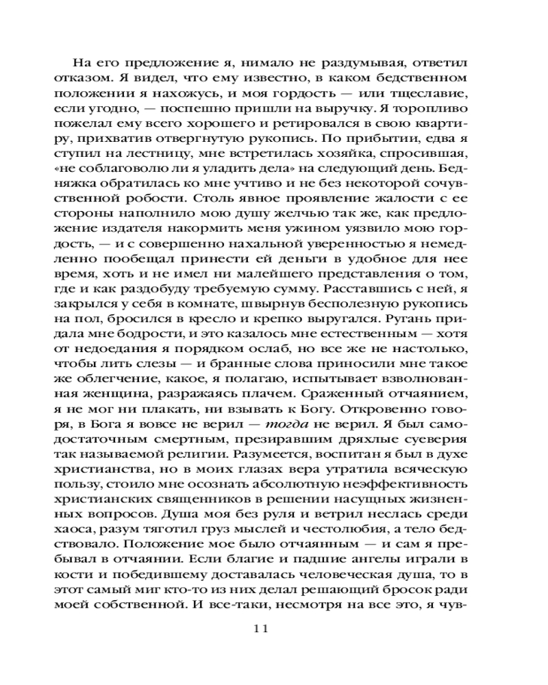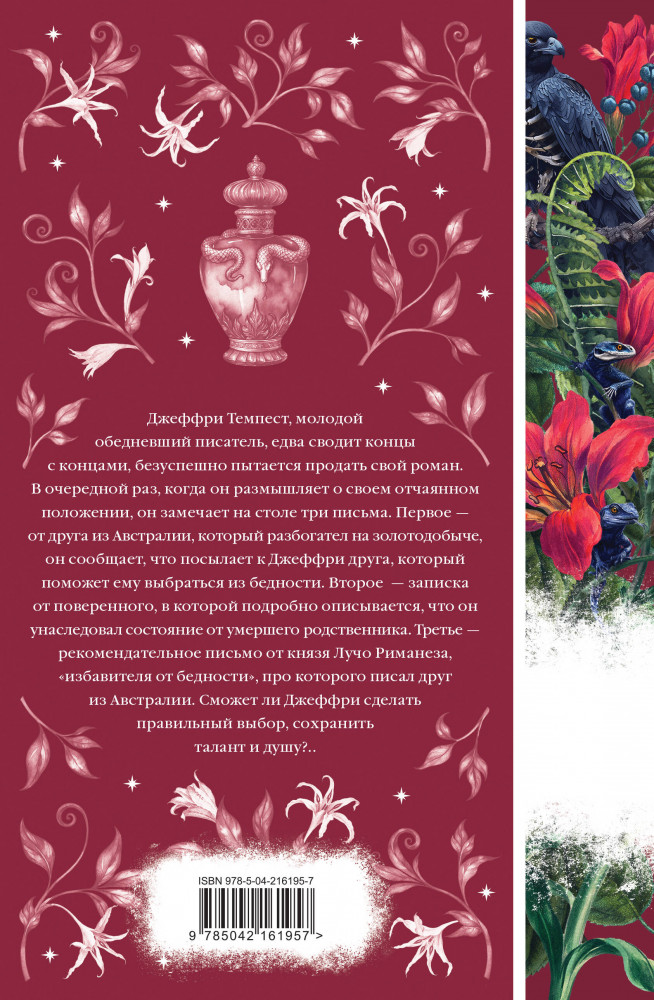 Серия: Элегантная классика. Тёмная любовь Действие романа происходит в Лондоне в 1895 году. Сатана ходит среди людей в поисках очередной игрушки. Но будет ли он забавляться с ней, чтобы показать Богу, что может развратить кого угодно, или же его намерения совсем иные?.. Он хочет найти кого-то достойного, кто сможет сопротивляться искушениям, что будет сложно, потому что вокруг царит безверие, коррупция, продажность. Джеффри Темпест, молодой обедневший писатель, едва сводит концы с концами, безуспешно пытается продать свой роман. В очередной раз, когда он размышляет о своем отчаянном положении, он замечает на столе три письма. Первое — от друга из Австралии, который разбогател на золотодобыче, он сообщает, что посылает к Джеффри друга, который поможет ему выбраться из бедности. Второе — записка от поверенного, в которой подробно описывается, что он унаследовал состояние от умершего родственника. Третье — рекомендательное письмо от князя Лучо Риманеза, «избавителя от бедности», про которого писал друг из Австралии. Сможет ли Джеффри сделать правильный выбор, сохранить талант и душу?.. |