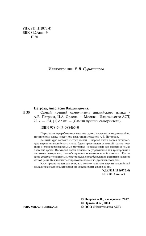 Получил свой заказ,книга хорошая.Но есть минусы: 1.На сайте заявлено 1 автор-А.В.Петрова и 2015 год,а на самом деле А.В.Петрова,И.А.Орлова тоже присутствует и книга 2012 года 2.На сайте написано 800 страниц,на самом деле 728 страниц.Ну это не критично кому либо но все ровно не приятно с их стороны. Поэтому ставлю 3 балла.Спасибо интернет магазину Flip за качественные вещи.