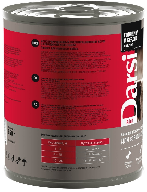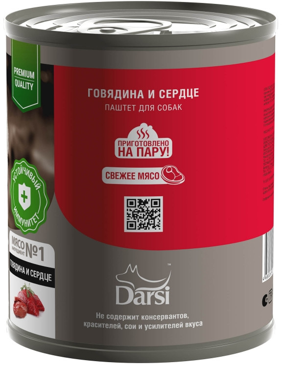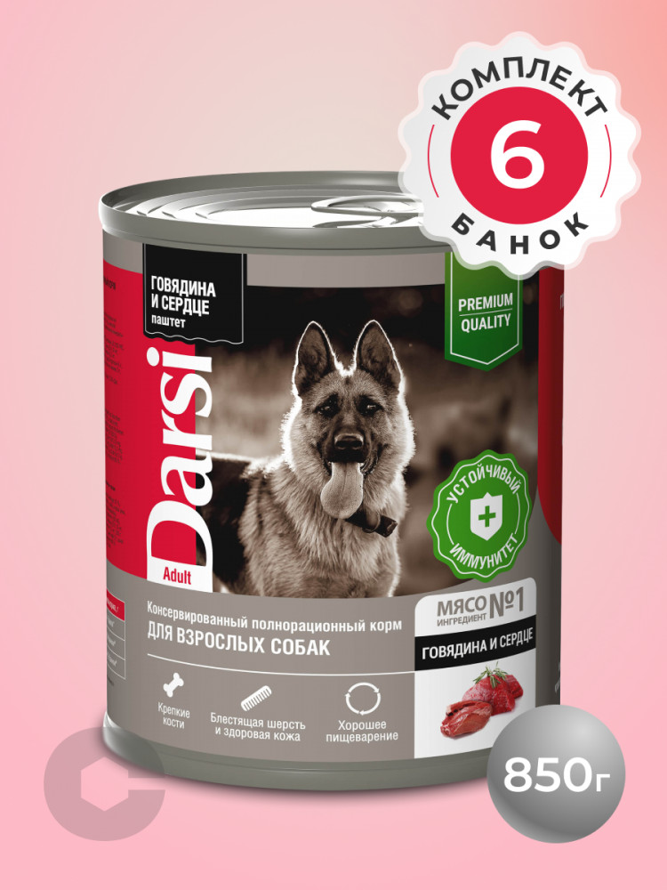 Darsi Комплект консерв для взрослых собак «Паштет говядина с сердцем»