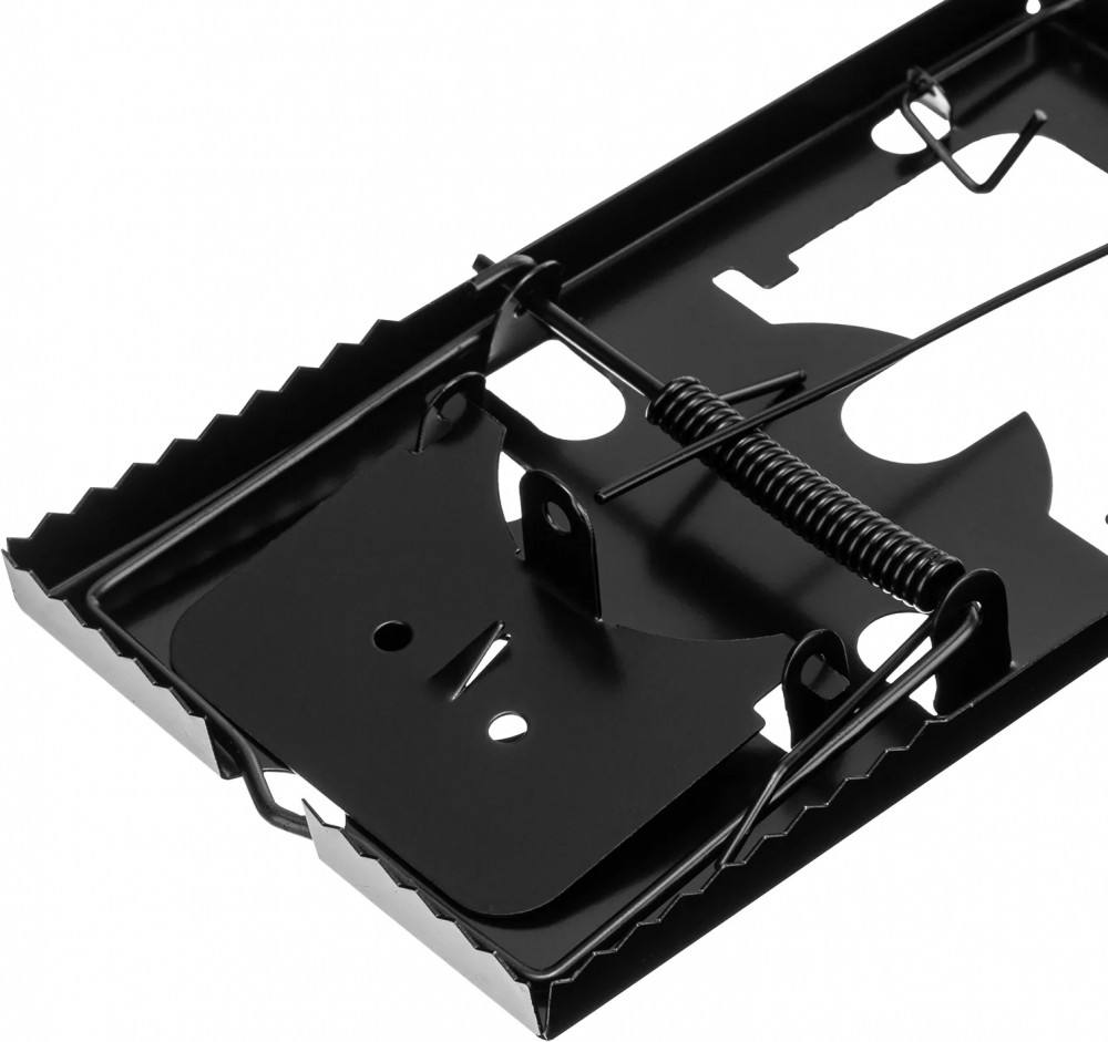 • эффективность — крысоловка оснащена мощной пружиной, а по краям основания имеются острые зазубрины, поэтому попавшийся грызун не сможет сбежать;