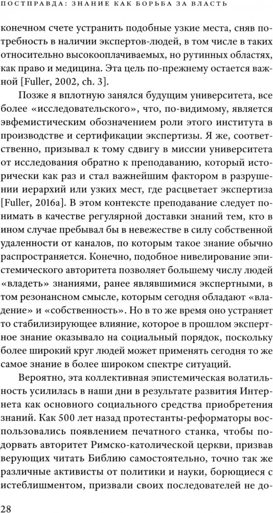 Серия: Политическая теория Хотя термин «постправда» был придуман критиками, на которых произвели впечатление брекзит и президентская кампания в США, постправда, или постистина, укоренена в самой истории западной социальной и политической теории. Стив Фуллер возвращается к Платону, рассматривает ряд проблем теологии и философии, уделяет особое внимание макиавеллистской традиции классической социологии. Ключевой фигурой выступает Вильфредо Парето, предложивший оригинальную концепцию постистины в рамках своей теории циркуляции двух типов элит — львов и лис, согласно которой львы и лисы конкурируют за власть и обвиняют друг друга в нелегитимности, ссылаясь на ложность высказываний оппонента — либо о том, что они (львы) сделали, либо о том, что они (лисы) сделают. Определяющая черта постистины — строгое различие между видимостью и реальностью, которое никогда в полной мере не устраняется, а потому самая сильная видимость выдает себя за реальность. Вопрос в том, как добиться большего выигрыша — путем быстрых изменений видимости (позиция лис) или же за счет ее стабилизации (позиция львов). Автор с разных сторон рассматривает, что все это означает для политики и науки. |