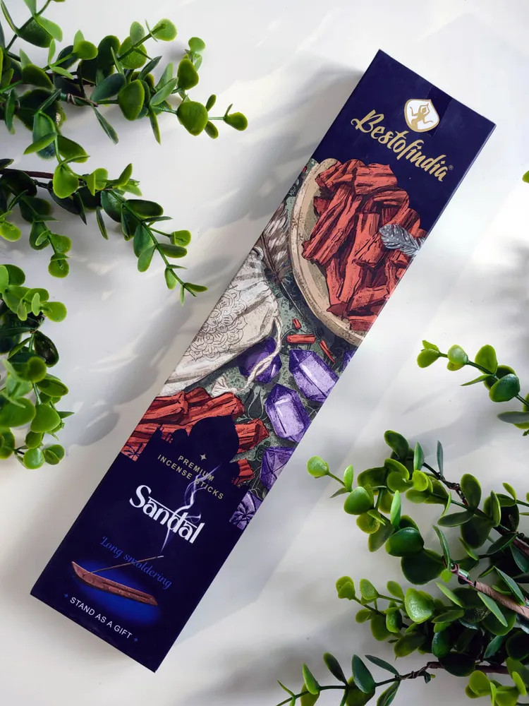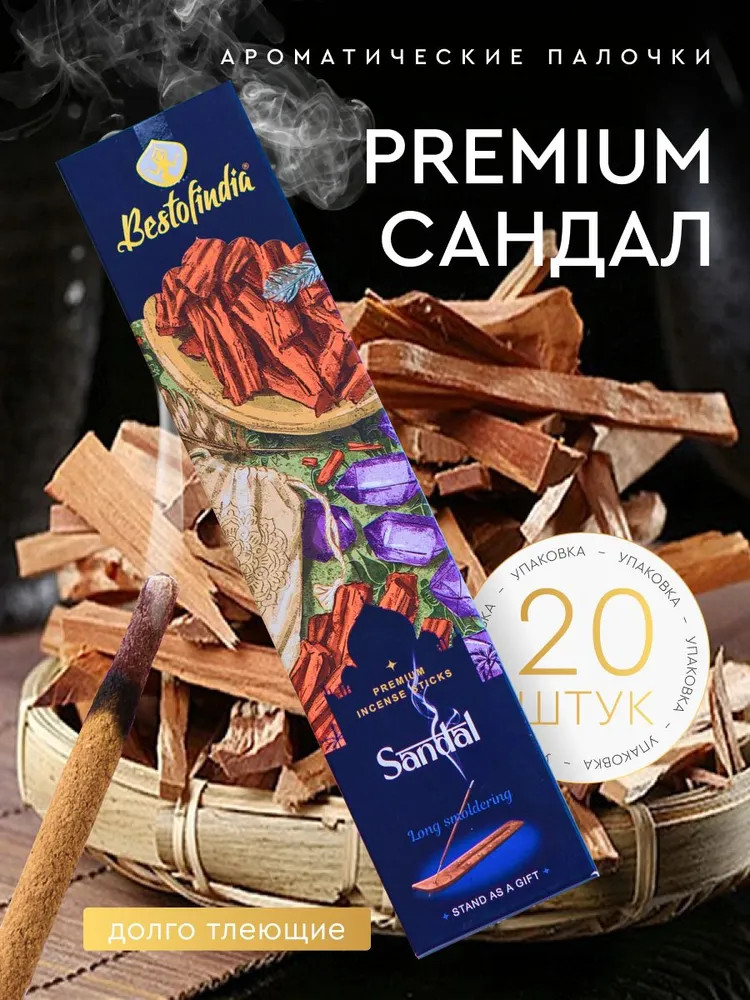 Натуральные индийские благовония Bestofindia. 20 штук больших аромапалочек (30 см) и подставка (лыжа). Изготовлены из высококачественных и натуральных компонентов. Погрузитесь в атмосферу уюта с нашими аромапалочками, которые станут неотъемлемой частью вашего дома. Этот стильный и элегантный аксессуар создан для тех, кто ценит натуральные ароматы и хочет наполнить свое пространство спокойствием и гармонией. Используя аромадиффузор, вы сможете наслаждаться волшебными запахами сандала, лаванды, пачули и вишни, которые создают неповторимую ауру в каждой комнате. Набор включает в себя палочки, которые удобно размещаются на подставке, обеспечивая стойкий аромат на долгое время.