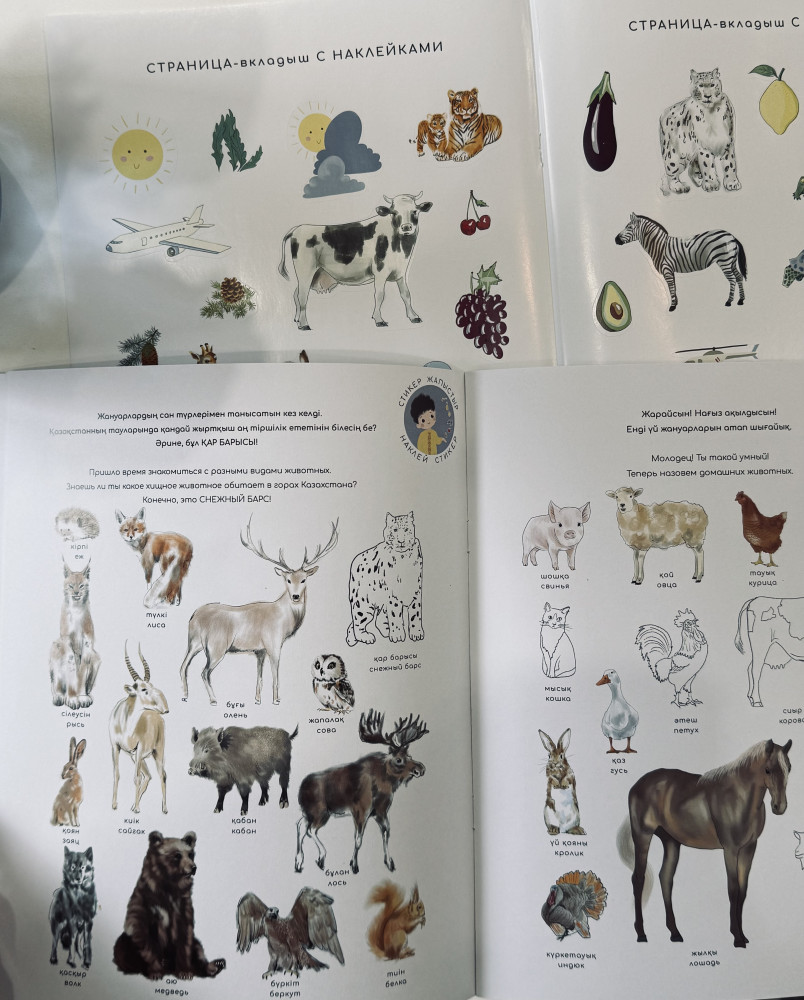 «Әлемді танимыз!» — это целый мир знаний, в который ребенок может погрузиться, играя и обучаясь. Она идеально подходит для детей, которые только начинают знакомиться с миром, и для родителей, желающих развивать у своих детей любознательность и заботу о мире вокруг. Книга содержит основные тематики для познания окружающего мира: животные, цифры, буквы, части тела, растения и пр. Книга увлекательна для изучения за счет наклеек и разукрашек. |