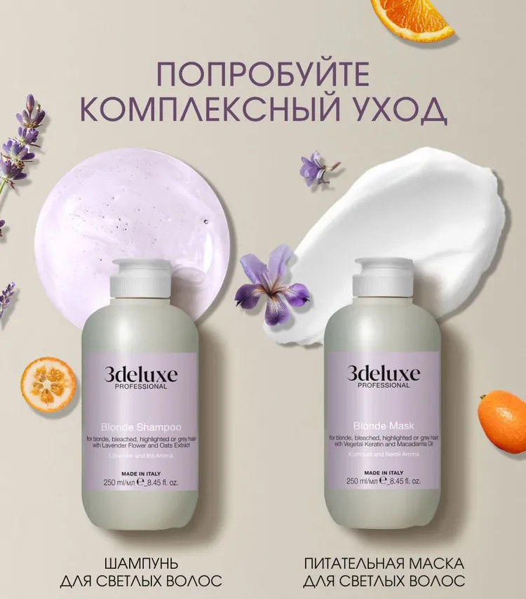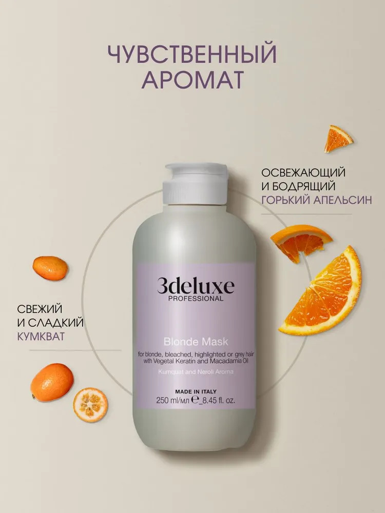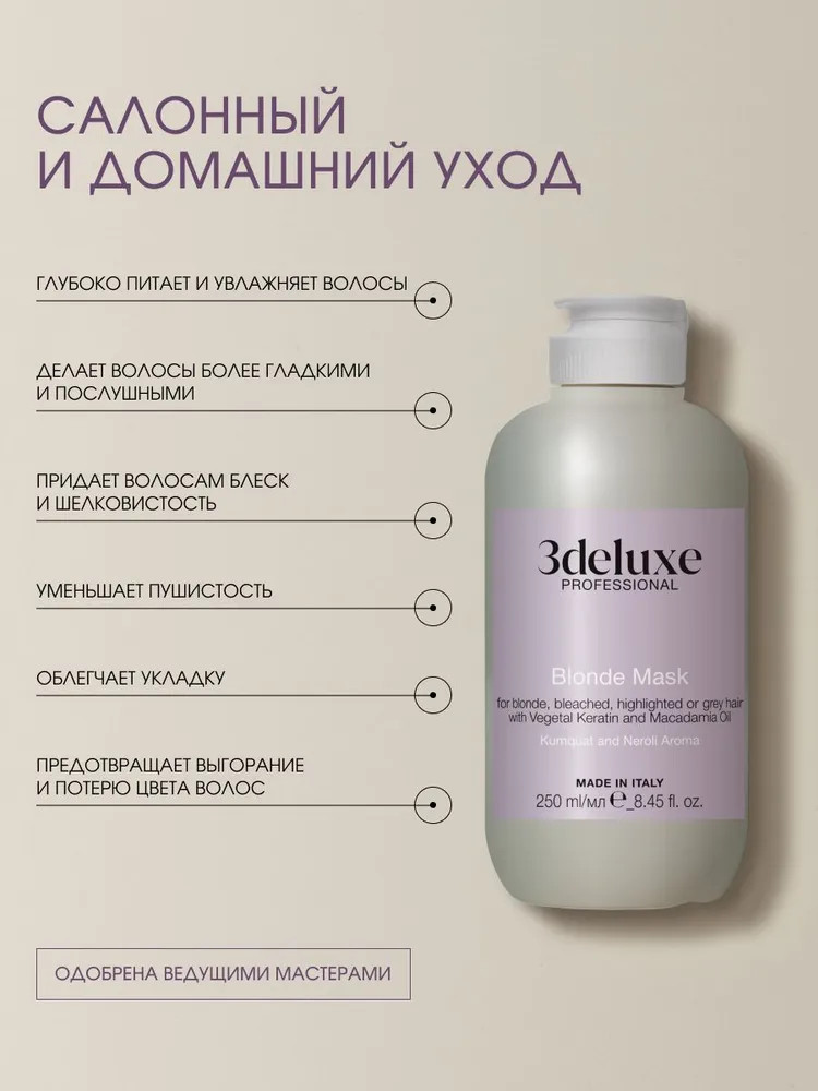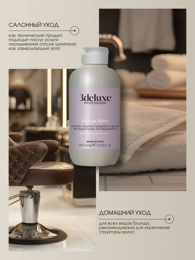 3Deluxe professional Маска для сохранения цвета светлых, осветленных, мелированных и седых волос с растительным кератином и маслом макадамии «Blonde Mask»