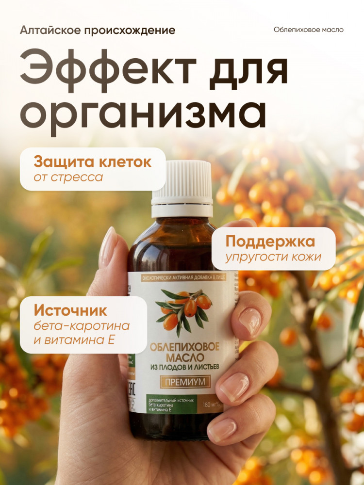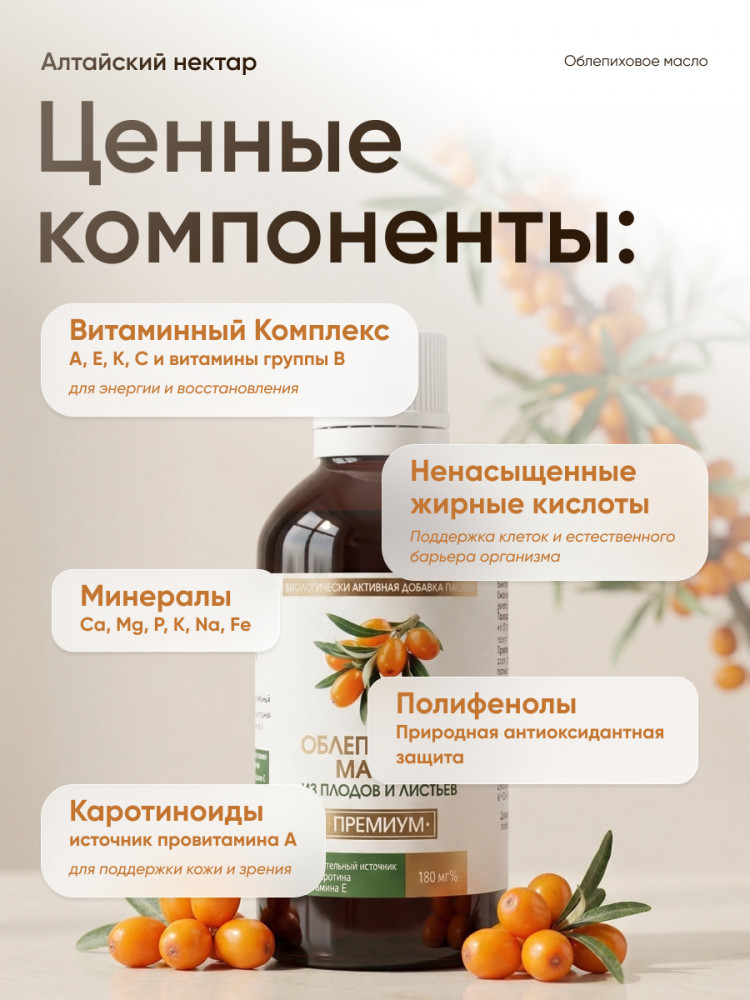 Облепиховое масло — это настоящий суперфуд и природный концентрат здоровья. Созданное из отборных плодов и листьев облепихи, оно является богатейшим источником