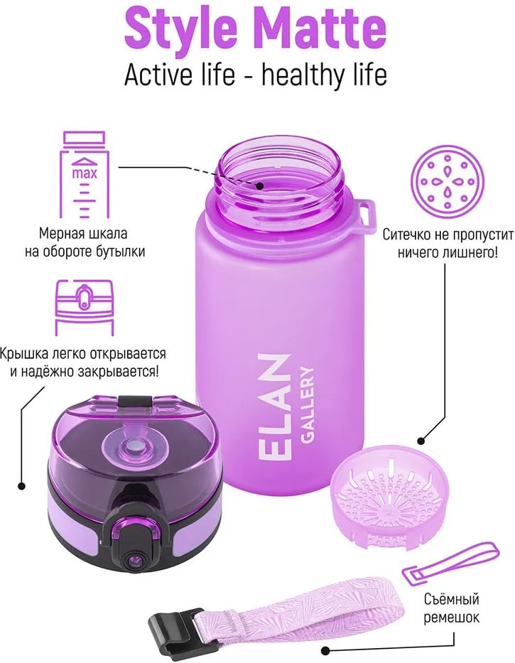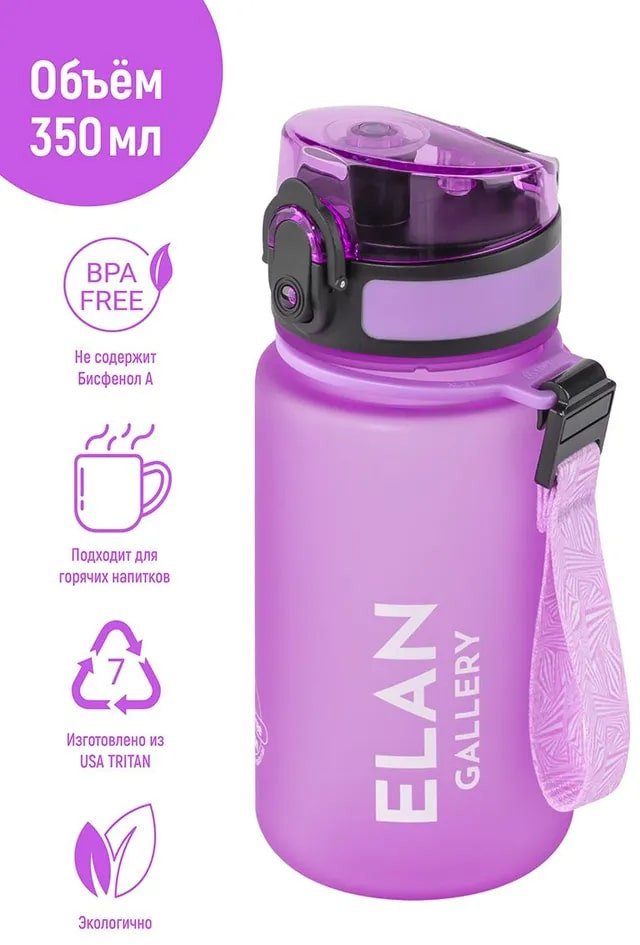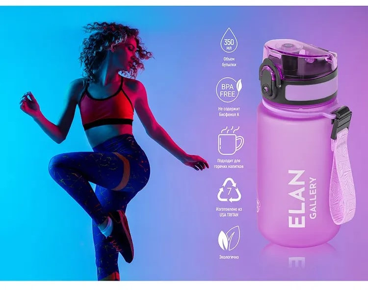 Бутылка для воды и другой жидкости 6,8×6,8×17 см Elan Gallery «Style Matte» со стильным градиентом имеет мерную шкалу с отметками по объему. Следите за водным балансом и ведите здоровый и активный образ жизни! Объём ёмкости — 350 мл, высота до крышки 12,5 см. Питьевая бутылочка выполнена из качественного пластика Usa Tritan. Материал не содержит бисфенол А, не выделяет вредных веществ, не имеет запаха. Подходит для холодных и горячих напитков: воды, сока или чая. На поверхности имеет углубления для пальцев, что обеспечивает удобный захват и предотвращает выскальзывание из рук даже во время бега. Бутыль для питья оснащена ситечком, поильником и клапаном (замком) на крышке. Дорожная бутылка имеет защиту от случайного открывания в сумке или рюкзаке. Ремешок для подвешивания съёмный: отсоедините черное крепление в виде крючка от бирюзового кольца. Стильный инвентарь станет незаменимой вещью на отдыхе, в путешествиях или спортзале. Бутылку на ремне с матовым покрытием удобно использовать во время поездок на велосипеде, в автомобиле или во время игры в футбол. Фляга для воды Style matte многоразовая, прочная и легкая, её удобно брать в дорогу или тренажёрный зал. Можно использовать как спорт бутылку для фитнеса и велоспорта, туризма, а также как детскую для школьника на занятиях физкультурой. Не впитывает запахи, не влияет на вкус напитков и легко отмывается. Красивая пластиковая бутылка поможет утолить жажду охлаждённым лимонадом на прогулке, тренировке или в школе. Не подходит для СВЧ, ПММ, стерилизатора. Станет приятным подарком мужчинам и женщинам. Такой сюрприз особенно придётся по вкусу спортсменам: футболисту или любительнице гимнастики и танцев. Станет прекрасным дополнением вашей коллекции походного и туристического инвентаря. В коллекции Elan Gallery представлено много посуды и товаров для дома на любой вкус. Спортивные аксессуары серии Style matte помогут следить за водным балансом и пить любимые напитки, где бы вы не находились.