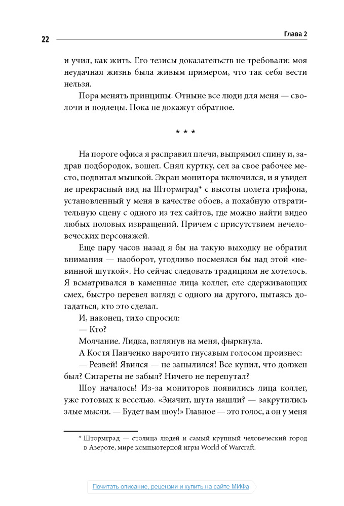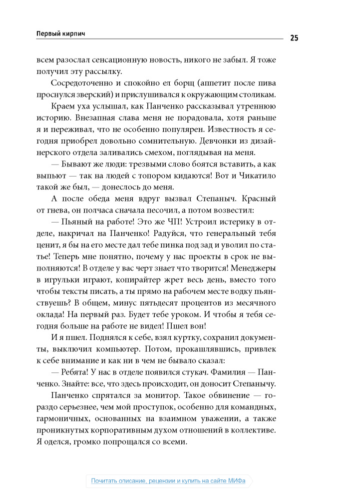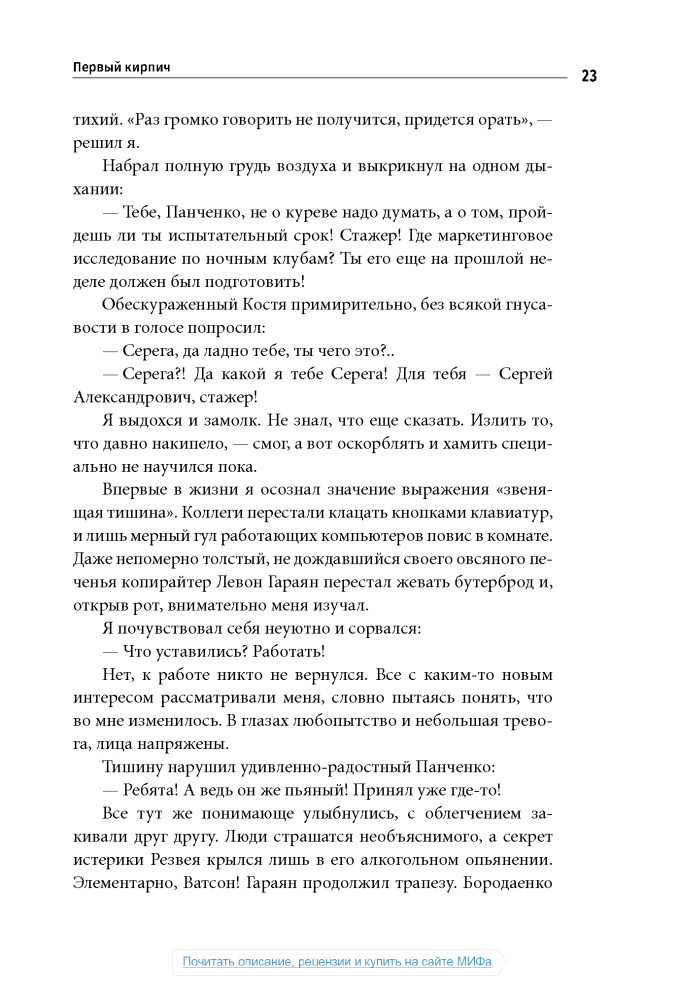 Это книга про нашего с вами современника, молодого человека по имени Сергей Резвей. Ему нет еще и тридцати лет, но уже кажется, что жизнь не удалась: нет ни любви, ни удовлетворения от работы, а коллеги не ставят его ни во что.