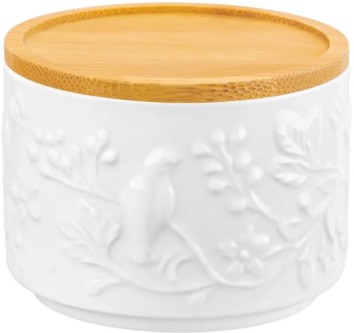 Серия: Птички на ветке Баночка Elan Gallery «Птички на ветке» объёмом 250 мл позволит хранить сыпучие продукты: соль, специи и приправы. Без крышки подходит для запекания в духовке или как глубокая формочка для красивой подачи маслин и солений. Размер 9,3×9,3×7 см, высота без крышечки 6 см. Банка выполнена из белого фарфора и украшена рельефным узором. Крышечка из бамбука плотно сидит благодаря силиконовому уплотнителю. Ёмкость с бамбуковой крышечкой станет полезным предметом на чаепитии, ведь её можно использовать для варенья, мёда и любых сладостей. Храните в ней сахар и джем, герметичная крышка защитит продукты от пыли и влаги. Без крышки фарфоровую баночку можно использовать как рамекин (форма для запекания порционных блюд и десертов) или жюльенницу. Храните угощения или порадуйте близких запеканкой из творога, жюльеном или крем-брюле! Также подойдёт в роли маленькой сервировочной тарелочки для оливок, орешков или соусов. Такие баночки удобно компактно хранить друг на друге. Не рекомендуется применять абразивные моющие средства. Без бамбуковых деталей фарфор можно использовать в микроволновой печи, посудомоечной машине и духовом шкафу для выпечки при температуре до 230 градусов. Бамбук нельзя замачивать! Поставляется в картонной упаковке. Благодаря красочной коробочке не понадобится подарочная упаковка. Станет полезным подарком на любой праздник, ведь её можно приспособить для хранения, выпекания или как соусник. В ассортименте бренда Elan Gallery представлено много красивой посуды, товаров для дома и различного кухонного инвентаря. Здесь есть всё для создания комфорта и уюта на вашей кухне! |