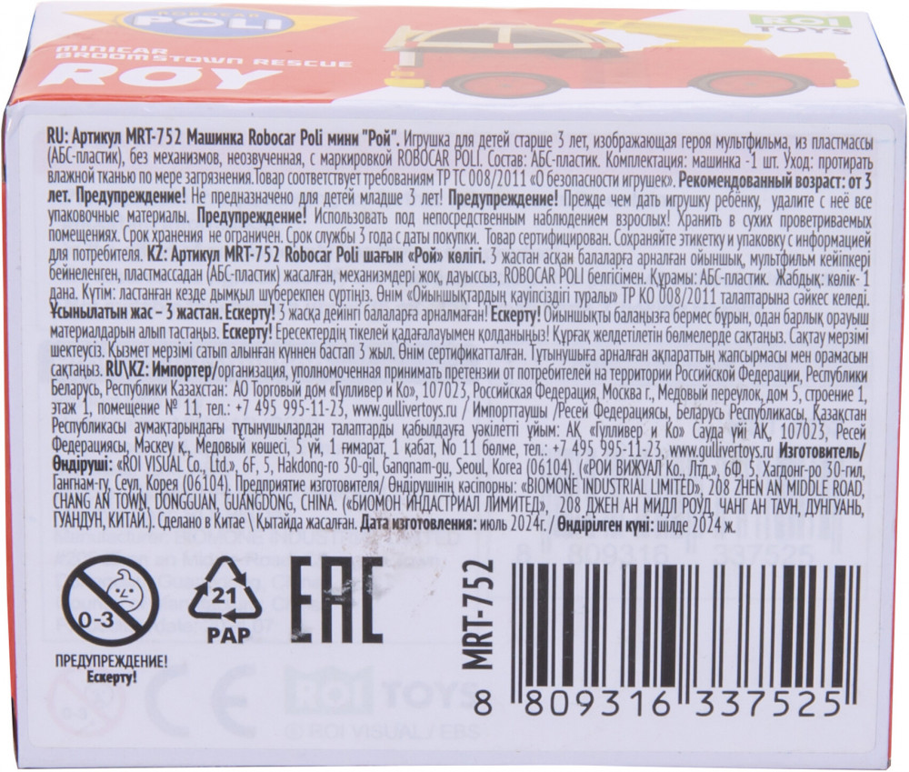 Станьте обладателем героя из любимого мультфильма — Робокар Поли! Пожарная машинка Рой — это увлекательная пластиковая машинка с подвижными колёсами, которая станет отличным компаньоном для самых маленьких автолюбителей. Сделанная из качественного материала, она позволит вашему малышу погрузиться в мир весёлых приключений и добрых поступков вместе с персонажами полюбившегося мультсериала. Пластиковая игрушка разработана специально для детских ручек, обеспечивая комфортную и безопасную игру. Колёса у машинки легко крутятся, даря возможность оживить сюжеты на автомобильных трассах или придумать собственные невероятные истории. Машинка представлена в очаровательной подарочной упаковке. Эта игрушка станет отличным средством для развития моторики и воображения у малышей. Длина машинки около 5,8 см. Собери всю коллекцию мини-машинок Robocar Poli! |