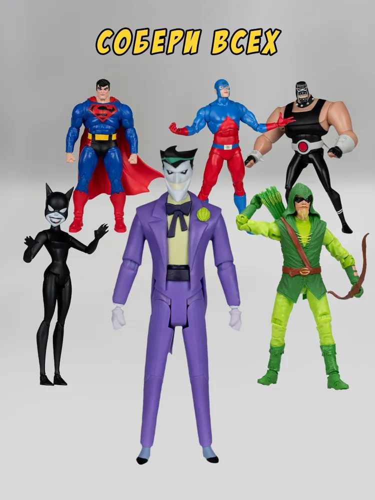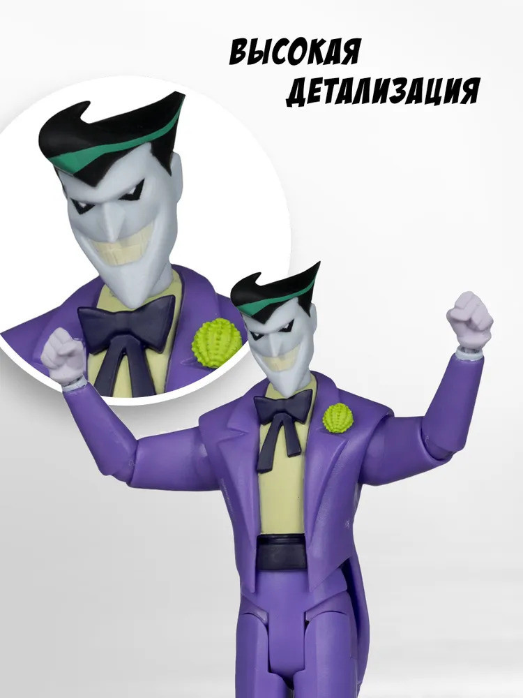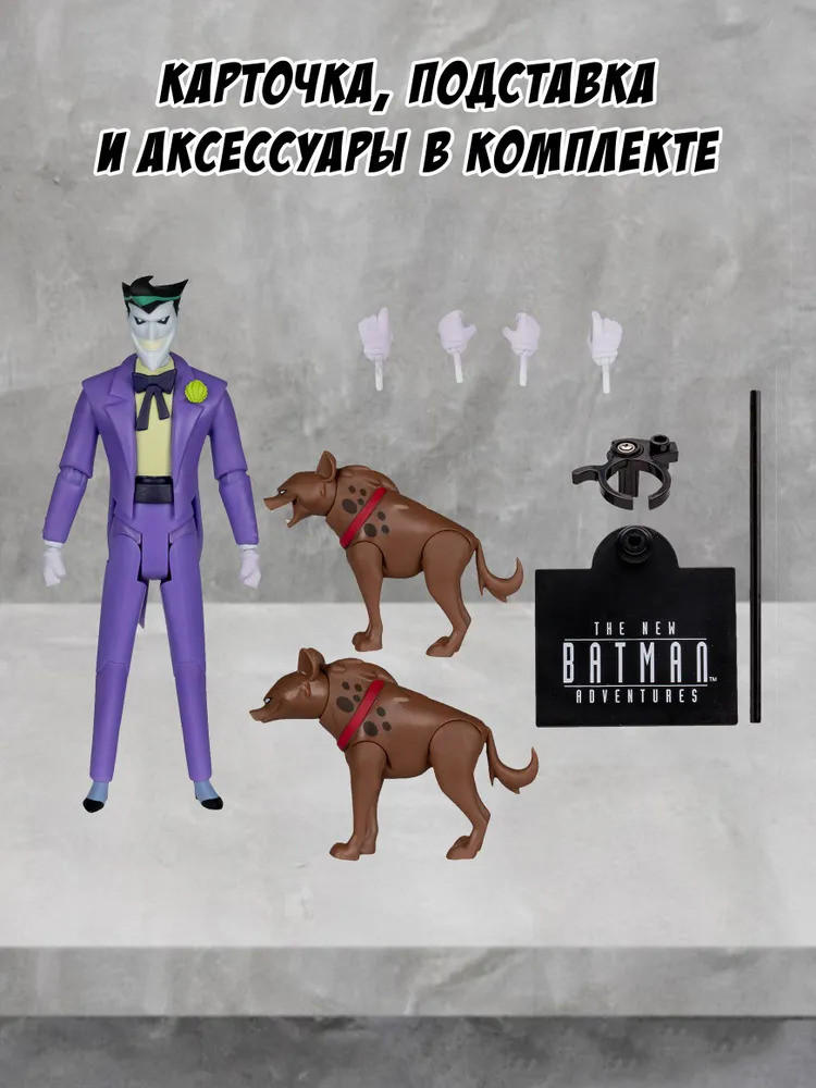 💳 Оплатить за товар можно при получении 🇰🇿 Есть бесплатная доставка по Казахстану 🎁 Копите бонусы с каждой покупки Серия: DC Фигурка МакФарлен Джокер (DC Новые приключения Бэтмена) в упаковке с прозрачным окном. Агент хаоса, клоун — воплощение всего того, с чем борется Бэтмен... и чего он боится. В упаковке: фигурка Джокера 15.2 см, аксессуары: подставка для фигурки, 2 фигурки гиены, 2 пары съёмных кистей рук, карточка репродукции анимационного мультсериала, лист персонажа с рамкой. Фигурка создана по мотивам мультсериала «Новые приключения Бэтмена». Фигурка разработана с несколькими точками артикуляции, чтобы принимать различные позы во время игры. |