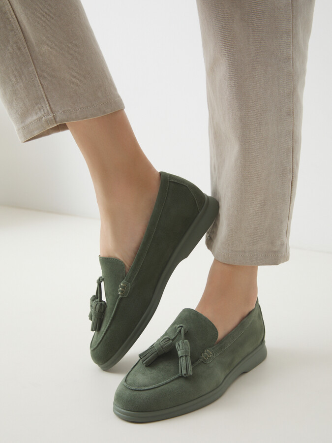 Элегантные и стильные лоферы — воплощение комфорта и утончённого вкуса! Эта модель идеально подходит для создания как повседневного, так и делового образа. Изготовленные из высококачественных материалов, они обеспечивают идеальную посадку и комфорт в течение всего дня. Лаконичный дизайн с изысканными деталями придаёт образу изящество, а устойчивая подошва делает каждую прогулку лёгкой и уверенной.