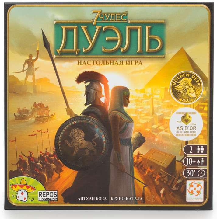 Развивайте науки и создавайте непобедимую армию, возводите великолепные здания и ведите свою цивилизацию к победе! 7 Чудес: Дуэль — это самостоятельная игра из популярной серии настольных игр 7 Чудес, созданная специально для 2 игроков. |