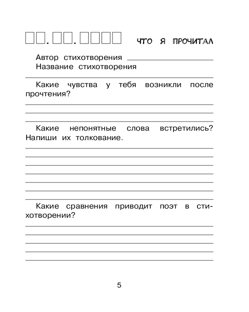 Читательский дневник с заданиями и наклейками. 2 класс