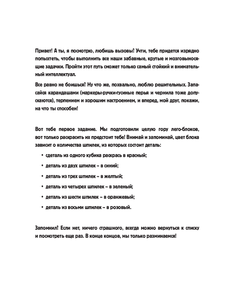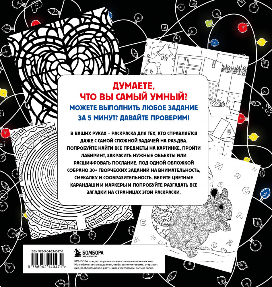 Я тут самый умный! Если вы так же смело можете сказать о себе, то эта книга точно для вас. На страницах этой книги-раскраски мы собрали самые интересные и запутанные задания, чтобы проверить каждого, кто рискнет к ним приступить. Сможете ли вы самостоятельно разгадать шифр? Выбраться из лабиринта? А найти посылку на почте? Вместе с этой раскраской вы сможете не только раскрыть свой творческий потенциал, но и потренировать свою смекалку.