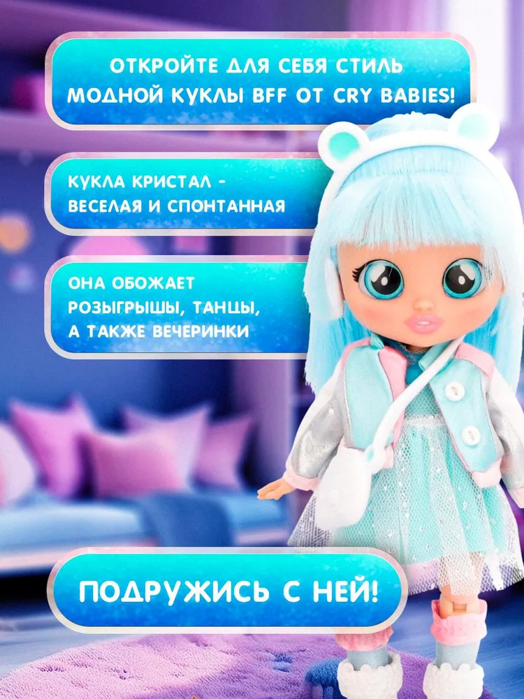 Cry Babies Кукла с аксессуарами «Кристал»В данный момент этот товар отсутствует в продаже. Возможно, у нас найдется аналогичный или похожий товар здесь. Серия: BFF Теперь ваш любимый персонаж из игры Cry Babies Magic Tears вырос и стал подростком! Невероятная яркая и красивая кукла BFF предлагает возможность создавать уникальные образы, благодаря стильным аксессуарам и модной одежде в комплекте. Распакуйте коробку и откройте для себя шкаф-гардероб вместе с сюрпризами. Детская игрушка выполнена из высококачественных и безопасных для детей материалов. В коллекции представлены Стелла, Кристал, Кэти, Джена и Доти. Игровой набор понравится каждой девочке. Станет прекрасным вариантом подарка на день рождения или 8 марта. Край Бебис — мир, наполненный положительными эмоциями, творчеством и взаимодействиями! |