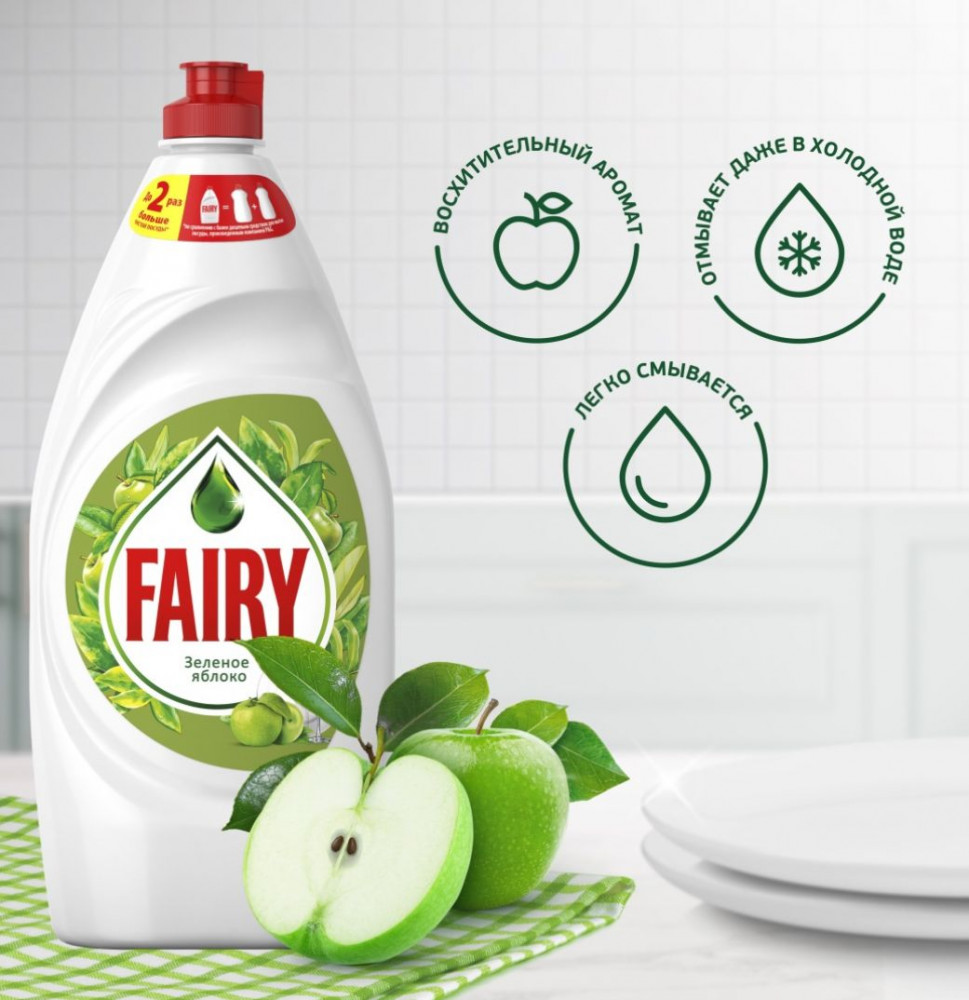 Откройте мир свежести и чистоты с Fairy Зелёное Яблоко! Этот волшебный продукт создан специально для тех, кто ценит безупречную чистоту и заботится об окружающей среде. Fairy Зелёное Яблоко — это экологичное средство для мытья посуды, которое эффективно удаляет жир и загрязнения, не оставляя следов и разводов. Благодаря своей уникальной формуле, оно бережно относится к коже рук и не вызывает раздражений.