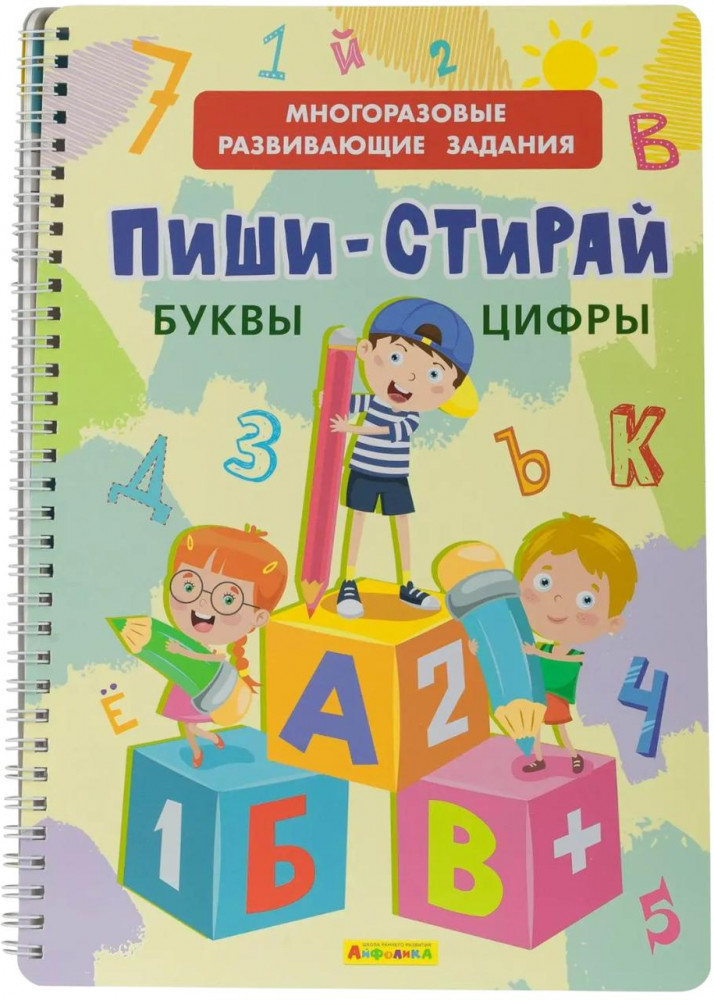Айфолика Тетрадь многоразовая «Пиши-Стирай. Буквы. Цифры»В данный момент этот товар отсутствует в продаже. Возможно, у нас найдется аналогичный или похожий товар здесь. Многоразовая развивающая тетрадь «Пиши-Стирай. Буквы. Цифры» станет любимой настольной развивашкой вашего ребёнка! С её помощью изучение букв и цифр станет увлекательным и мегаэффективным занятием. 30 красочных плотных страниц тетради изготовлены из прочного картона. каждая страница заламинировна, что позволяет писать и стирать бесчисленное количество раз! Книга предназначена для мальчиков и девочек от 3 до 6 лет. |