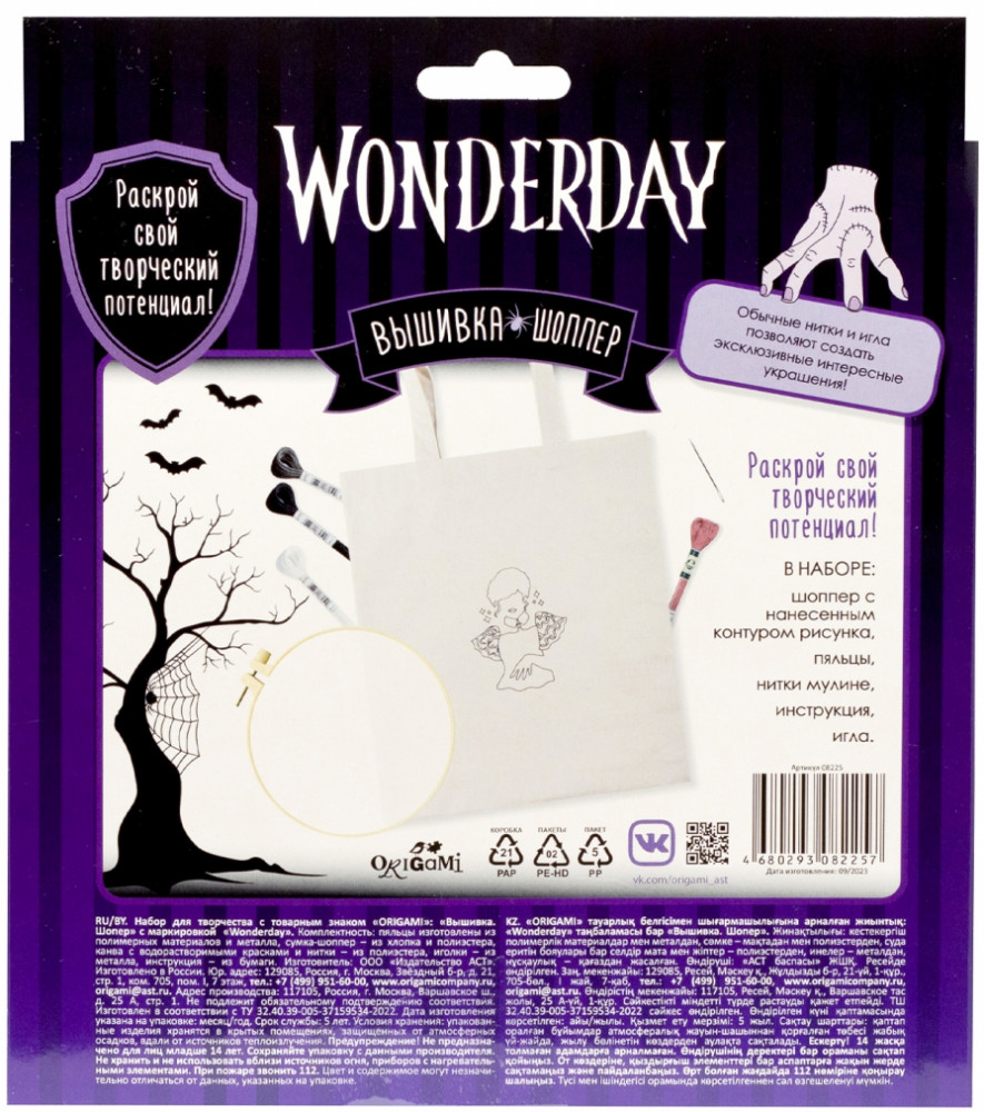 Origami Набор для творчества «Шоппер с вышивкой. Wonderday»В данный момент этот товар отсутствует в продаже. Возможно, у нас найдется аналогичный или похожий товар здесь. Серия: Wonderday Набор для творчества «Шоппер с вышивкой. Wonderday» — модный выбор для любителей рукоделия. Дизайн вышивки создан по мотивам супер популярного сериала. Он содержит все необходимые материалы, включая инструкцию. С помощью этого набора вы можете создать стильный и модный шоппер, которую можно носить самостоятельно или подарить близким. |