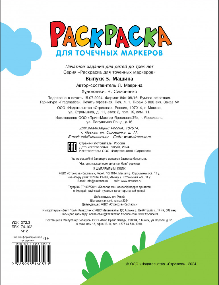 💳 Оплатить за товар можно при получении 🇰🇿 Есть бесплатная доставка по Казахстану 🎁 Копите бонусы с каждой покупки Серия: Раскраска для точечных маркеров Эта раскраска подходит для любых точечных маркеров. Рисовать ими — сплошное удовольствие! Открывается необыкновенный простор для творческого мышления детей. Яркие отпечатки точечных маркеров делают картинки нарядными и оригинальными. |