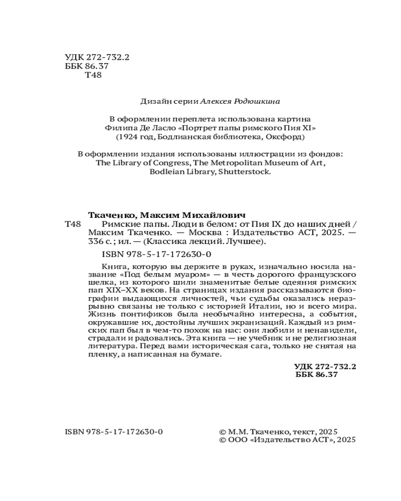 Серия: Классика лекций. Лучшее Книга, которую вы держите в руках, изначально носила название «Под белым муаром» — в честь дорогого французского шёлка, из которого шили знаменитые белые одеяния римских пап XIX–XX веков. На страницах издания рассказываются биографии выдающихся личностей, чьи судьбы оказались неразрывно связаны не только с историей Италии, но и всего мира. Жизнь понтификов была необычайно интересна, а события, окружавшие их, достойны лучших экранизаций. Каждый из римских пап был в чем-то похож на нас. Они любили и ненавидели, страдали и радовались. Сегодня мы с удовольствием смотрим исторические сериалы, красочно демонстрирующие события прошлого, но почему бы не обратиться к тексту, который позволит вашему воображению гораздо ярче представить то, о чем вы читаете? Эта книга — не учебник и не религиозная литература. Перед вами историческая сага, только не снятая на пленку, а написанная на бумаге. |