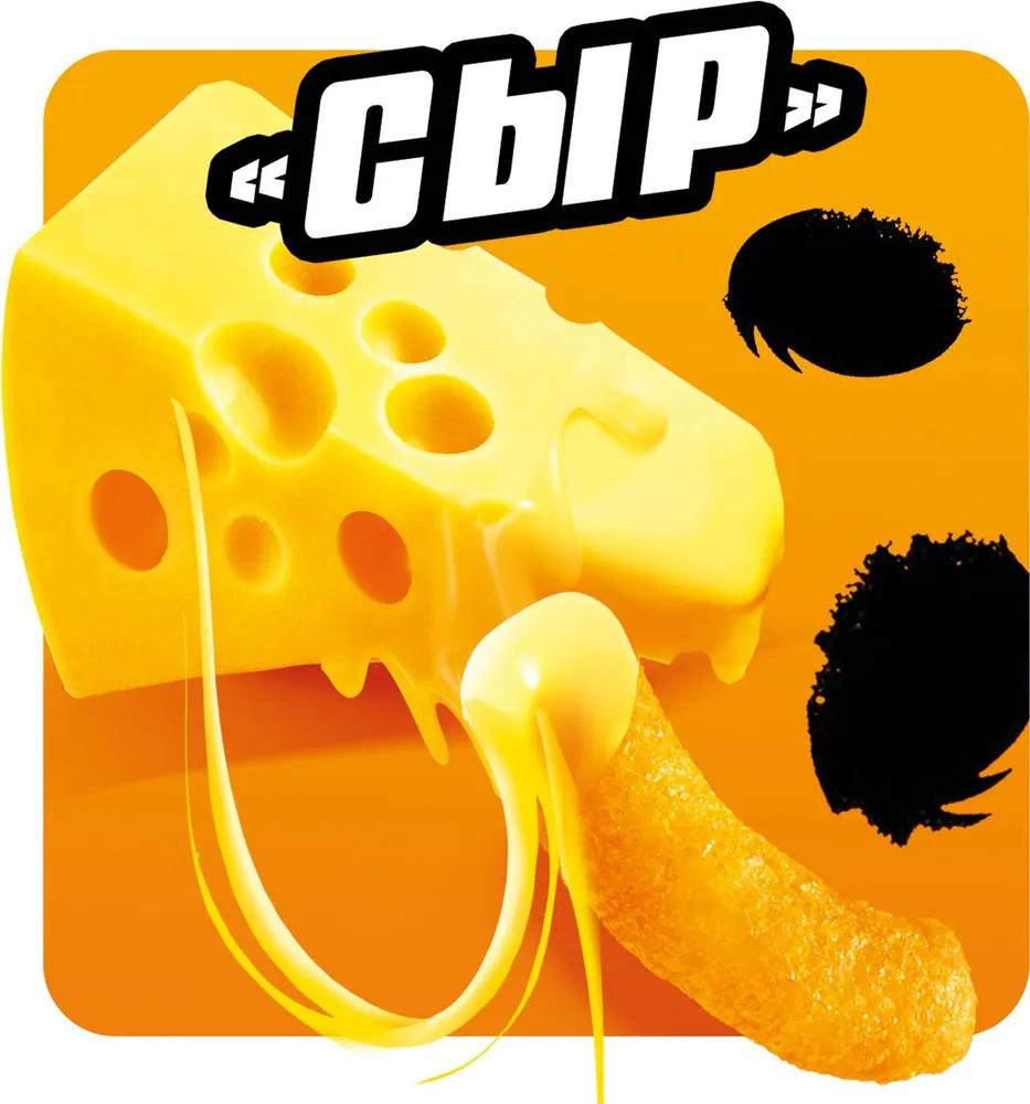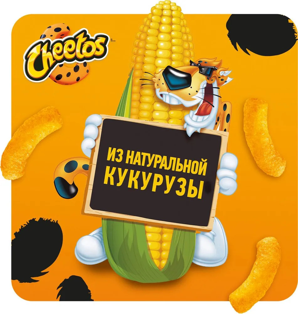 Крупа кукурузная, масло рапсовое, ароматизатор [пшеничная мука, сухая молочная сыворотка, соль, усилители вкуса и аромата (глутамат натрия 1-замещенный, 5'-гуанилат натрия 2-замещенный, 5'-инозинат натрия 2-замещенный), агент желирующий (хлорид калия), сахар, вкусоароматические вещества, регулятор кислотности (лимонная кислота), краситель (экстракт паприки)].