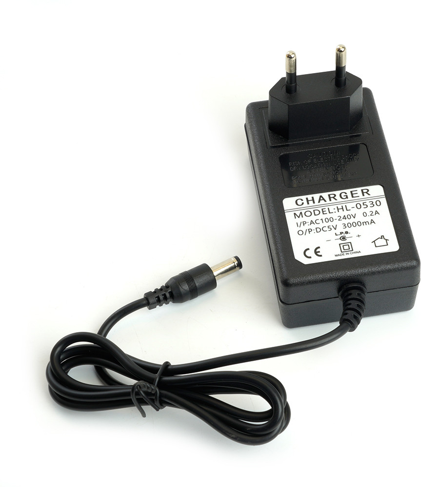 Для заряда аккумулятора в комплекте поставки идет адаптер DC5В/2А, для подключения адаптера в нижней части корпуса прожектора есть специальный разъем. На лицевой стороне встроен светодиодный индикатор заряда и сигнальный (проблесковый) маячок оранжевого цвета.