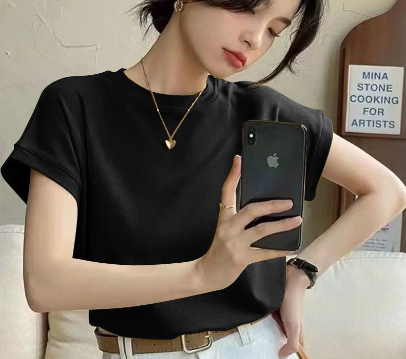 Материал футболки — высококачественная ткань «ледяной шёлк», приятная к коже и износостойкая. Подходит для создания как повседневных, так и более элегантных комбинаций, идеально подходит для сочетания с джинсами, шортами или юбками. Стильная, комфортная и практичная — эта футболка станет незаменимым элементом вашего летнего гардероба.