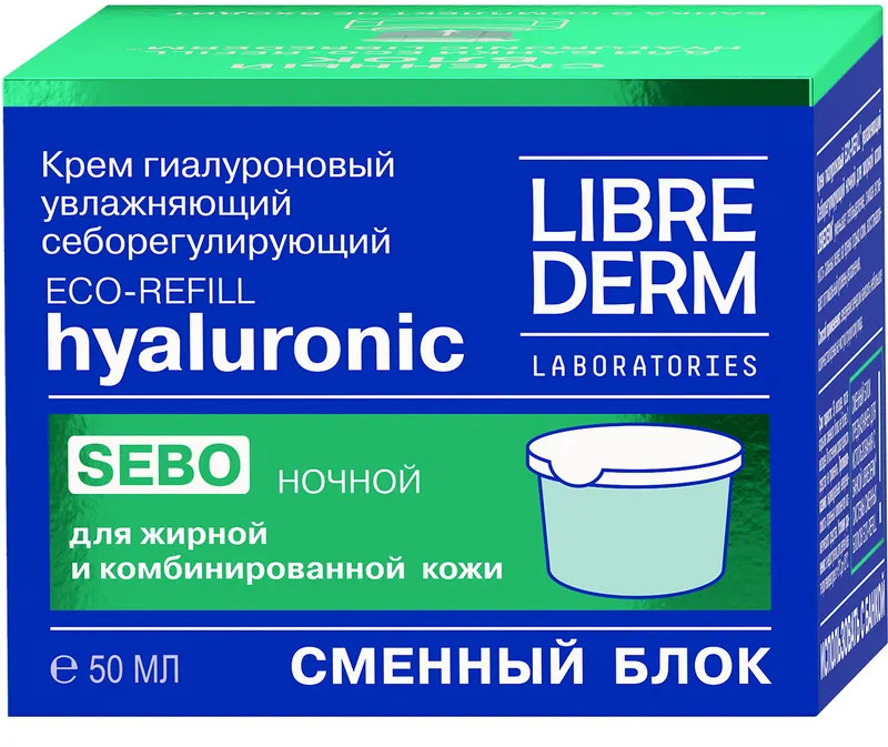 Librederm Сменный блок крема для жирной и комбинированной кожи лица гиалуронового ночного Sebo «Увлажняющий себорегулирующий»
