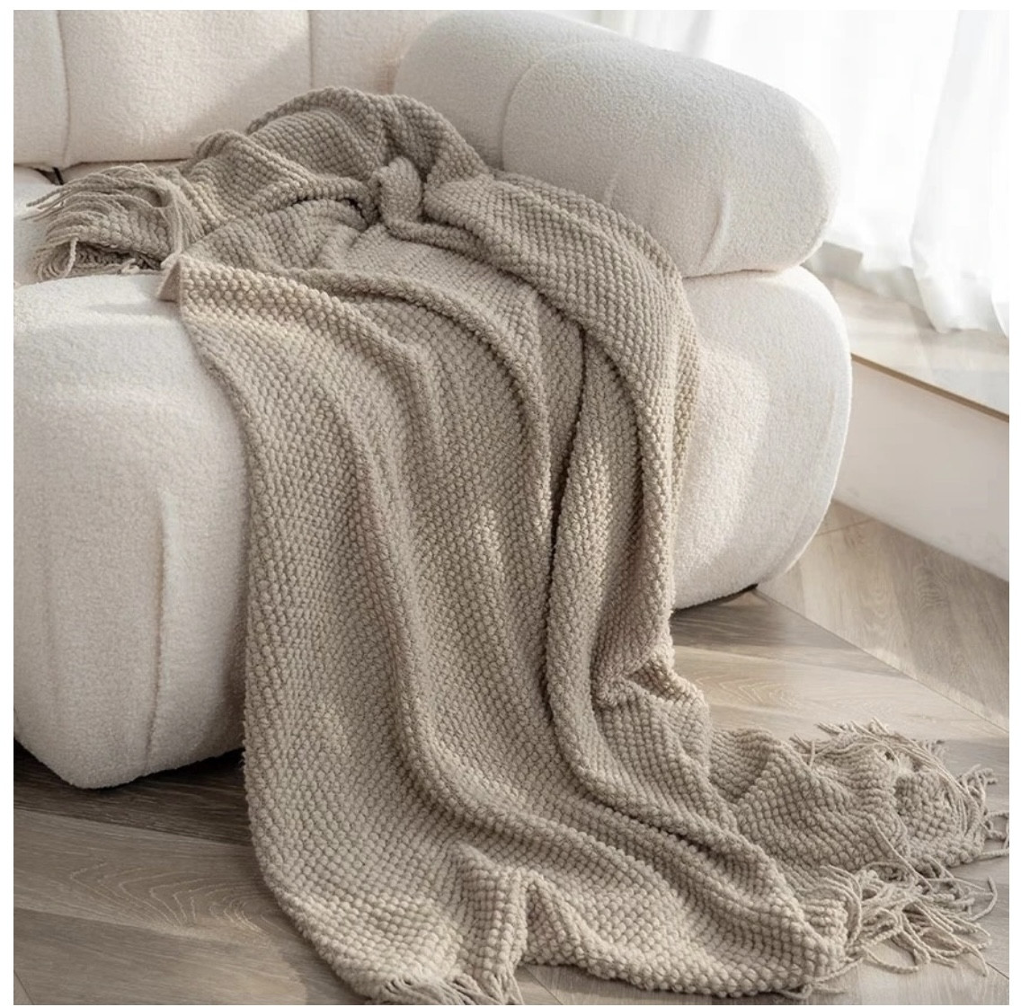 Плед в теплом бежевом оттенке дополнит интерьер любой комнаты. Вы можете использовать его как покрывало на кровати или диване, а также как накидку в холодное время года. Благодаря мягкой текстуре и модному дизайну с разнообразными расцветками, этот плед станет незаменимым элементом декора в вашем доме.