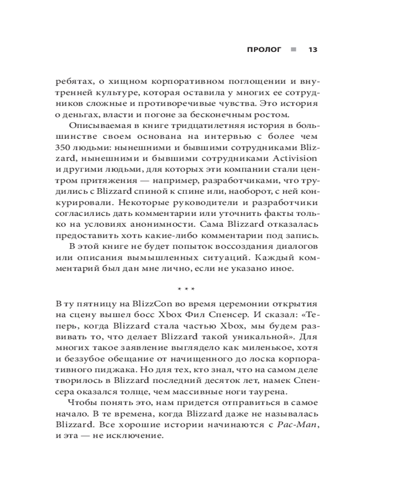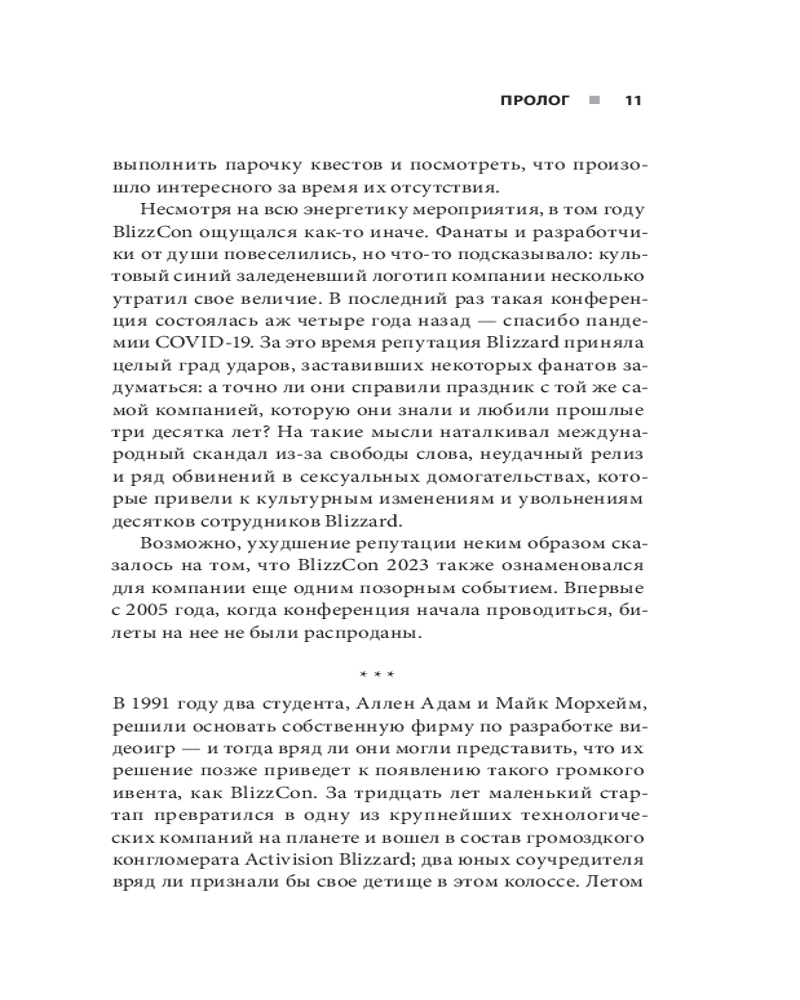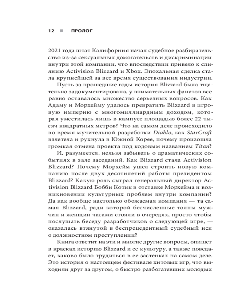 Книга основана на интервью с более чем тремя сотнями текущих и бывших сотрудников и описывает эпическую сагу Blizzard Entertainment во всей красе — от триумфального взлета к славе до стремительного падения. Эта история полна ярких личностей и драматических поворотов. Она рассказывает о том, что происходит, когда художественный идеализм сталкивается с безжалостным стремлением к прибыли.