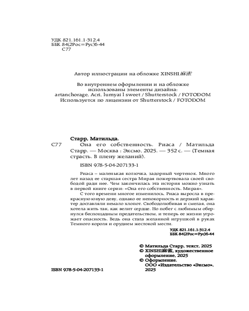Серия: Тёмная страсть. В плену желаний Я сбежала из родного дома, чтобы быть со своим возлюбленным. А он проиграл меня в кости. Такой была расплата за мое безрассудство, жестокий урок. В мире, где похоть и страсть — это источник силы, я стала разменной монетой. Здесь нет справедливости, только закон, который старается оградить людей от Темных — тех, кто обладает магией. Темные питаются энергией невинных девушек, они способны испить их до дна, лишая жизни. Я буду бороться до последнего вздоха. Но есть ли шанс на спасение, если я попала в порочный плен темного короля... |