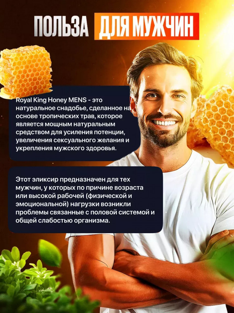 Что такое Men’s Bio Honey? Men’s Bio Honey – это уникальный Малайзийский продукт, созданный на основе натурального меда и экстрактов редких трав. Эта формула разработана специально для мужчин, которые хотят повысить свою энергию, выносливость, потенцию и общее самочувствие. Продукт содержит 100% натуральные ингредиенты, которые активно поддерживают мужское здоровье и способствуют естественному повышению тестостерона. Этот продукт не является обычной пищевой добавкой – он содержит проверенные временем ингредиенты, которые помогают естественным образом поддерживать мужское здоровье. В отличие от синтетических препаратов, Men’s Bio Honey не вызывает привыкания и имеет натуральный состав.