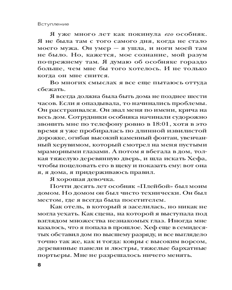 Серия: Автобиография-бестселлер В 2008 году 21-летняя Кристал Харрис попадает на вечеринку в известный особняк Playboy. Из сотни молодых блондинок именно ее выбирает сам Хью Хефнер и приглашает познакомиться поближе. Эта ночь меняет жизнь юной Кристал навсегда. Она поселяется в особняке, но за фасадом модных вечеринок и беззаботной жизни в качестве одной из «подружек» знаменитого плейбоя скрывается самая настоящая тюрьма... Хефнер контролирует своих «подружек» жесткими правилами — от внешнего вида и карманных денег до времени возвращения домой, — и стравливает их, заставляя бороться за его внимание. Кристал включается в игру и выходит из нее победительницей: на глазах у миллионов зрителей реалити-шоу The Girls Next Door Хью просит стать его женой. Но именно с этого момента жизнь в особняке становится совсем невыносимой. |