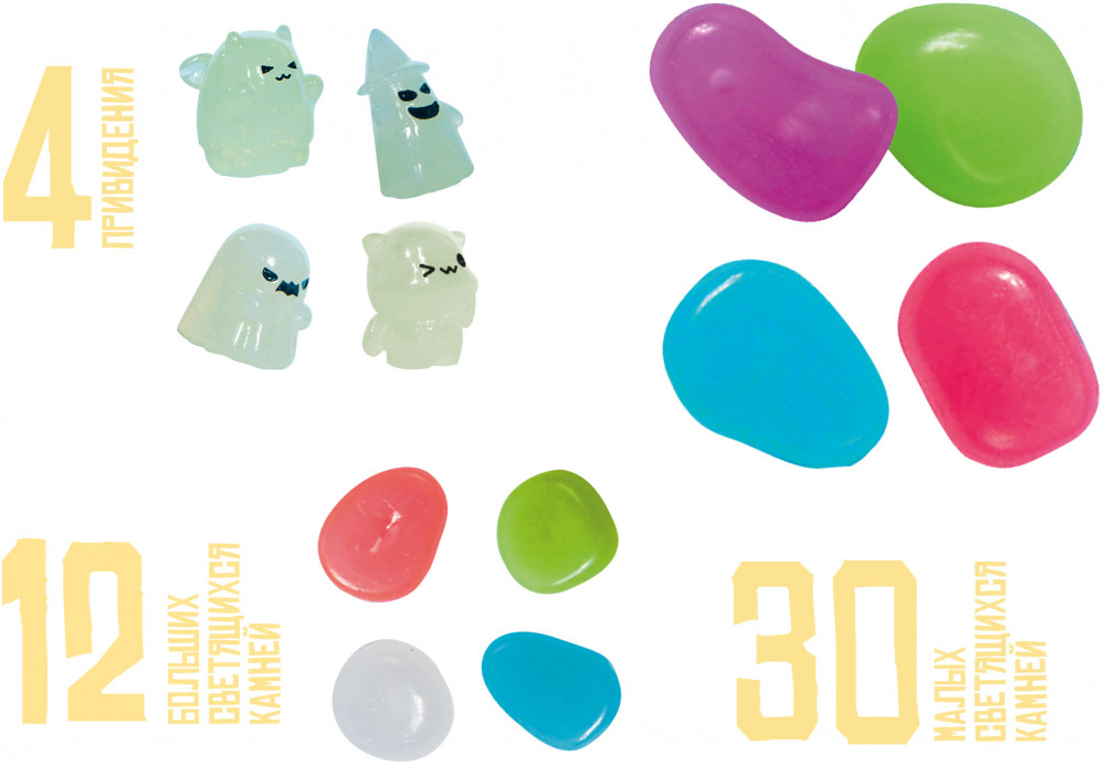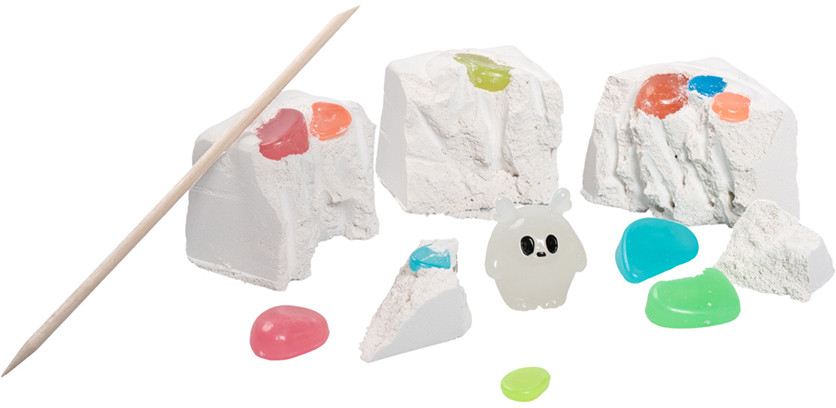 Набор для раскопок «Сокровища привидений» — это большой набор, играя с которым можно найти 4 фигурки милых привидений и много драгоценных камней, все сокровища светятся в темноте! Начинайте раскопки, постепенно откалывая кусочки грунта с помощью специального деревянного стека. Набор для раскопок «Сокровища привидений» развивает концентрацию, мелкую моторику и точность движений. Добытые фигурки можно использовать в других играх или для декора интерьера. |