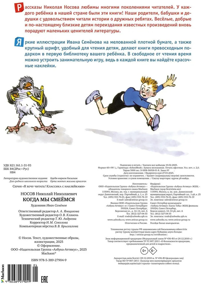 💳 Оплатить за товар можно при получении 🇰🇿 Есть бесплатная доставка по Казахстану 🎁 Копите бонусы с каждой покупки Серия: Я хочу читать! Классика с наклейками Рассказы Николая Носова любимы многими поколениями читателей. Весёлые, добрые и по-настоящему близкие детям переиздания известных произведений вновь порадуют маленьких ценителей литературы. Советские ретроброшюры с красочными иллюстрациями художников теперь ещё и с наклейками! Найди внутри книги наклейки с Незнайкой и его друзьями! |