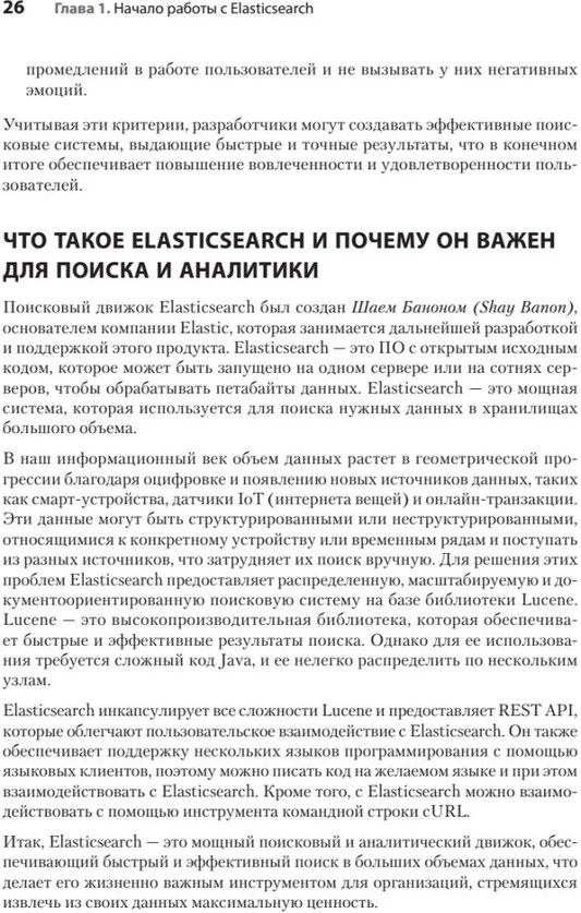 Серия: Библиотека программиста Elasticsearch — мощный инструмент для работы с большими объемами данных. Это масштабируемая, надежная и быстрая система со множеством функций для анализа и поиска данных. Книга представляет собой подробное руководство по использованию Elasticsearch для управления данными. В начале приводится обзор Elasticsearch, где описана его важность в современном мире. Далее рассматриваются основы Elasticsearch, включая установку, настройку и управление индексами. Затем автор переходит к более сложным темам, таким как обработка геопространственных данных и использование агрегаций для анализа данных. Кроме того, внимание уделено вопросам оптимизации работы, производительности и администрирования. Практические примеры помогут понять и применить изученные концепции. Вы получите глубокое представление об Elasticsearch и сможете использовать его для управления большими объемами данных и извлечения из них ценной информации.ж |