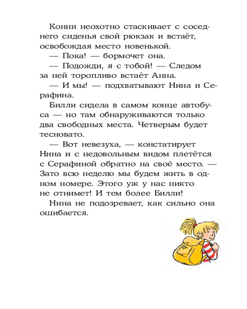 Серия: Лучший друг — Конни Небольшая история, динамичный сюжет, яркие иллюстрации и любимая героиня — всё это есть в книгах о приключениях подросшей Конни. Она уже учится в школе и весело проводит время со своей семьёй и друзьями. Конни с подружками так ждали эту поездку с классом в старинный замок! Но внезапное появление новенькой чуть не нарушило все планы. Смогут ли ребята найти общий язык и хорошо провести время, или проклятье привидений замка испортит всё удовольствие? |