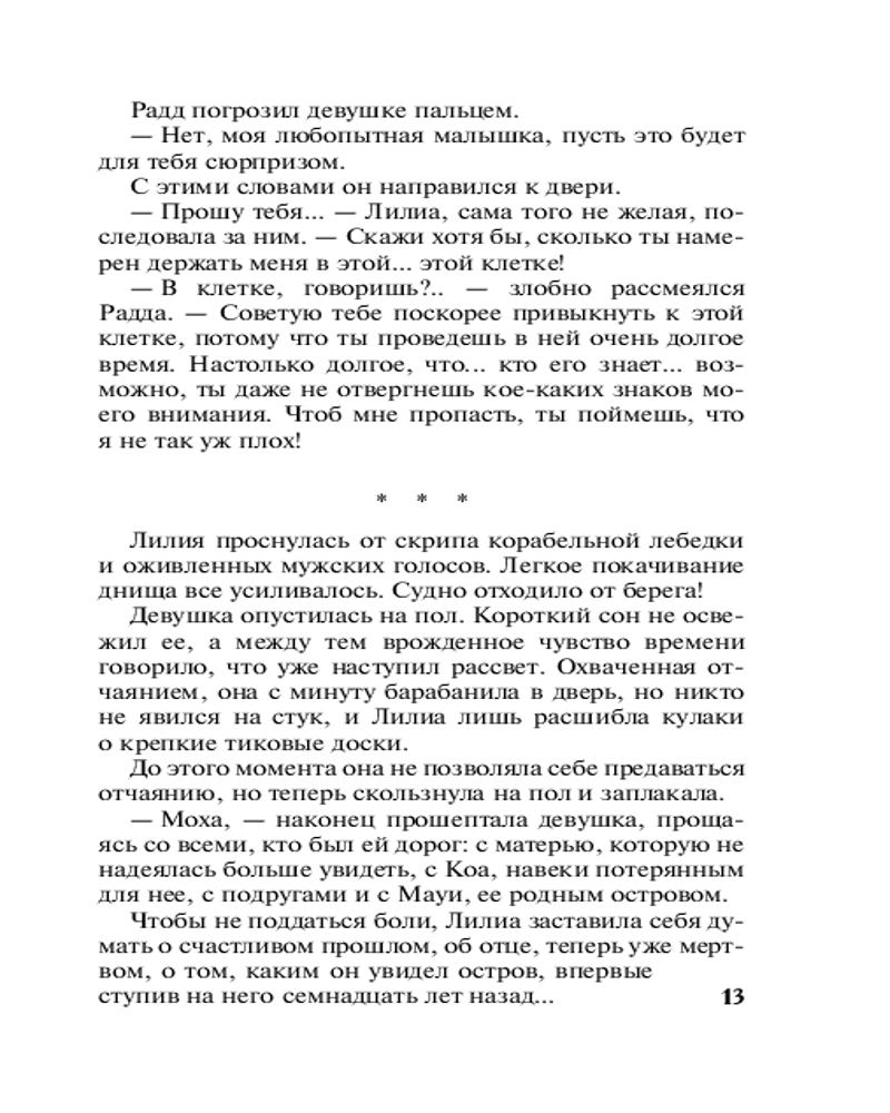 💳 Оплатить за товар можно при получении 🇰🇿 Есть бесплатная доставка по Казахстану 🎁 Копите бонусы с каждой покупки Серия: Очарование (мини)! Жизнь гавайской метиски Лилиа Монрой внезапно меняется, когда ее силой увозят в далекий Лондон к богатой белой бабушке, где красавице предстоит нелегкая жизнь в высшем свете, в окружении зависти, сплетен и презрения к ее смешанной крови. Между тем и хищные родственники, охотящиеся за деньгами бабушки Лилиа, и кое-кто на ее родных островах готовы на все, чтобы девушка бесследно и навсегда исчезла. И единственный, кто приходит на помощь Лилиа, — мужественный и отважный Дэвид Тревелайн... |
