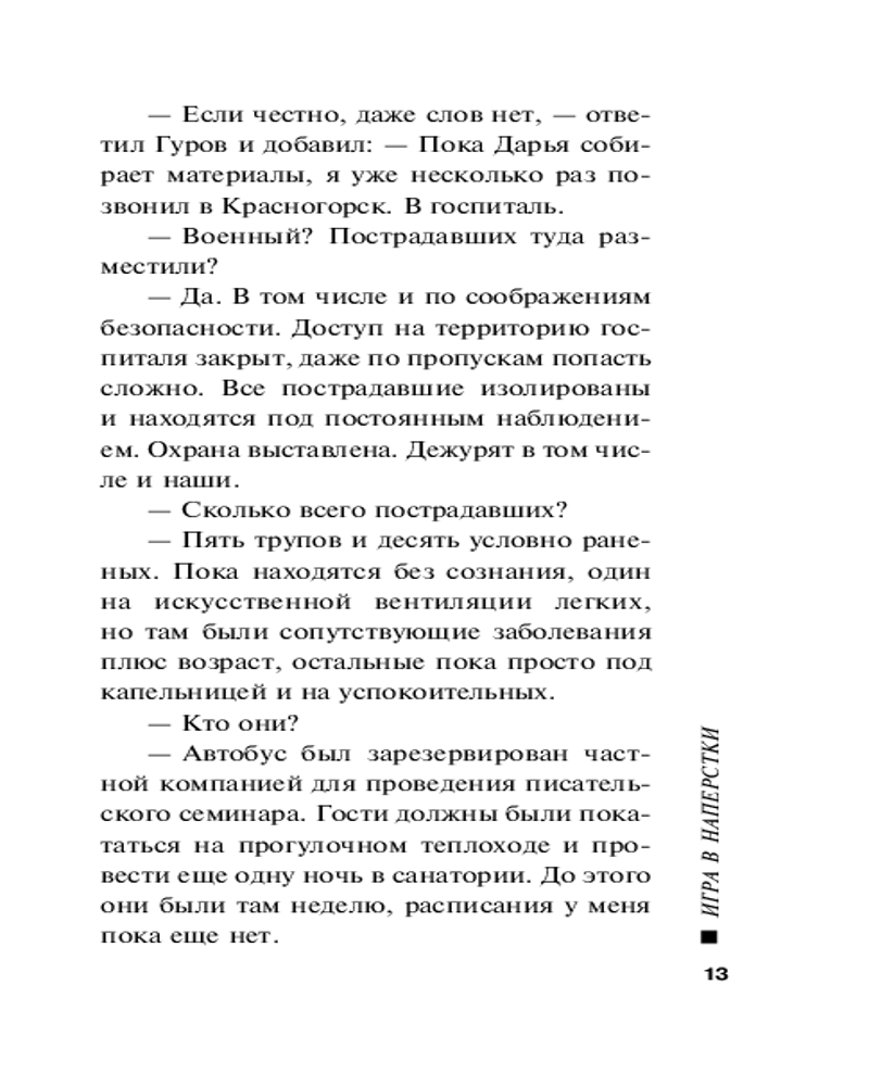 Серия: Русский бестселлер (обложка) На стоянке около Истринского водохранилища находят микроавтобус. Его пассажиры обездвижены. Пятеро из них мертвы. Экспертиза установила, что причиной их гибели стало отравление газом, специально пущенным в салон. Полковники МВД Гуров и Крячко выясняют, что все жертвы — писатель, поэт, музыкант, художник и скульптор — были из группы, приехавшей на специально организованную творческую встречу. Причем один из погибших значился ее непосредственным организатором. Понимая, что случайностью это происшествие не назовешь, сыщики изучают биографию каждого из пострадавших. Вывод, который делают оперативники, ошеломляет следствие... Николай Леонов, в прошлом следователь МУРа, не понаслышке знал, как раскрываются самые запутанные уголовные дела. Ставшая классической серия «Черная кошка» насчитывает более 200 книг, вышедших тиражом в десятки миллионов экземпляров. |