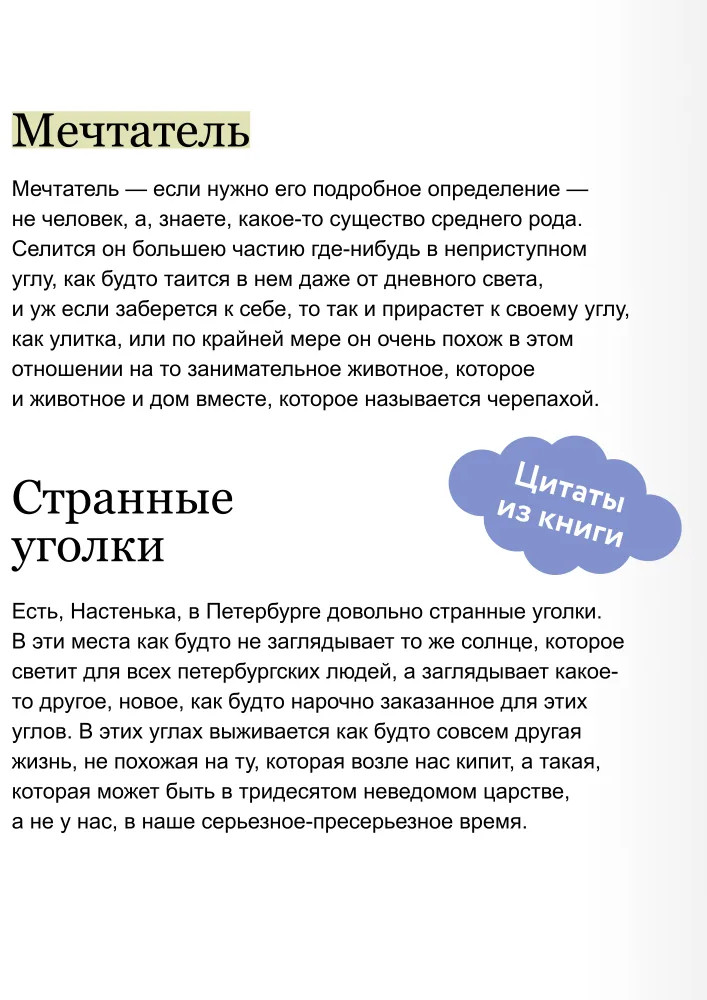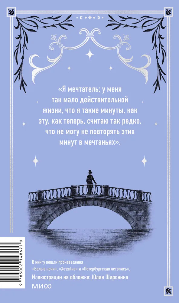💳 Оплатить за товар можно при получении 🇰🇿 Есть бесплатная доставка по Казахстану 🎁 Копите бонусы с каждой покупки Серия: Вечные истории Безответная любовь, глубокое одиночество, крушение мечты и образ мечтателя объединяют ранние и самые поэтичные повести Достоевского «Белые ночи» и «Хозяйка». Герои этих произведений влюбляются, жертвуют собой, пытаются вырваться из неблагополучных условий и однообразия серой жизни и в наваждении бродят по улицам Петербурга, с любовью описанных автором. Эта любовь отразилась также в цикле фельетонов «Петербургская летопись», где впервые появляется образ мечтателя. |