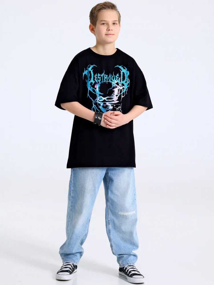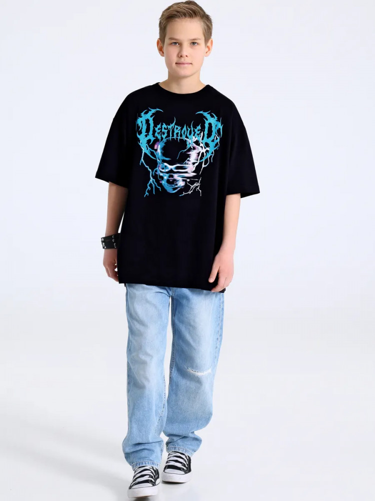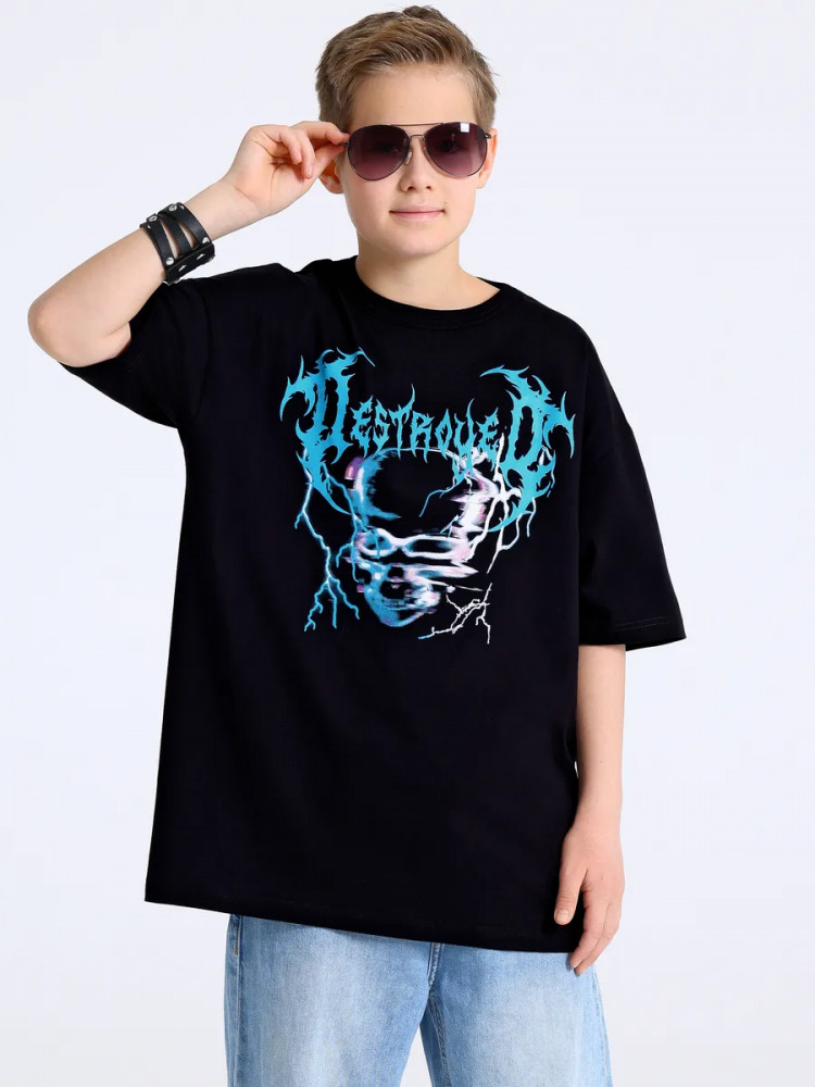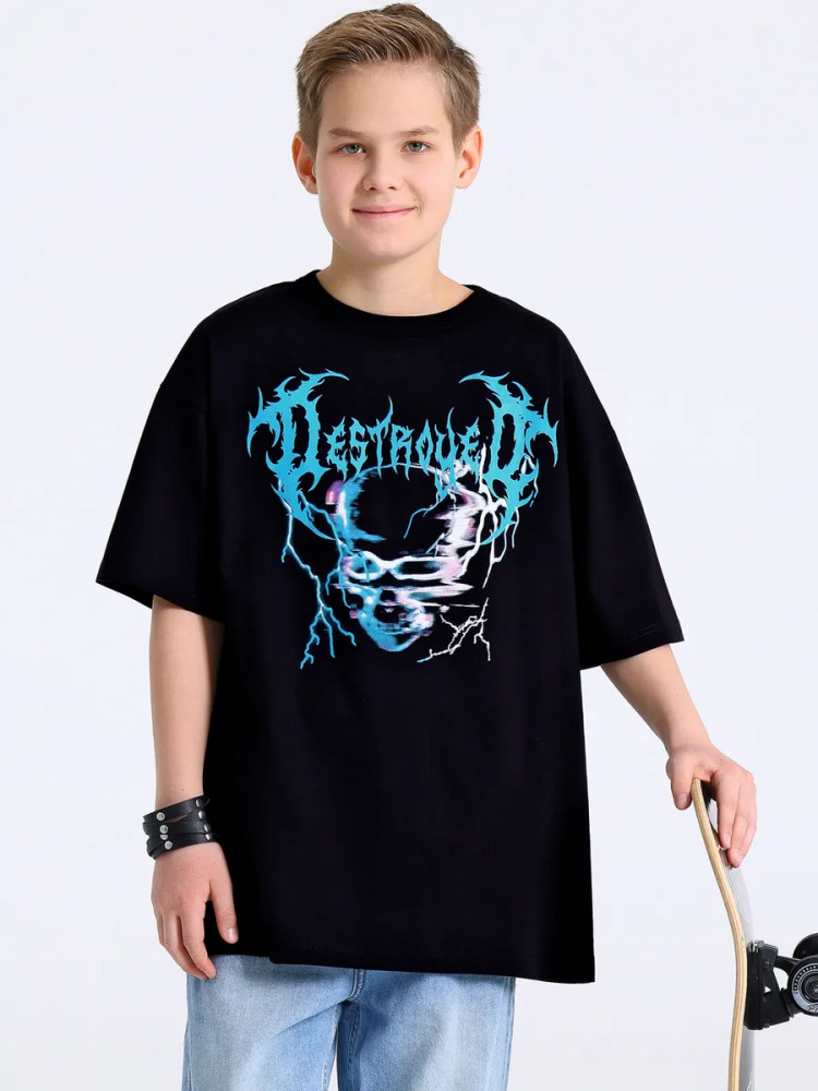 Апрель Футболка для мальчиков «Надпись с молниями»