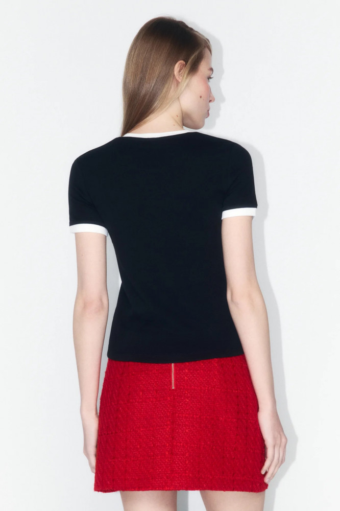 Удобная дышащая футболка с надписью, в которой ты будешь чувствовать себя комфортно в любой ситуации. Хлопковая футболка с принтом-надписью из новой коллекции подойдет для привлекательных аутфитов на каждый день и по особым поводам. Создавай с ней образы в стиле гранж, сочетая с денимом, кожей, массивной обувью и острыми аксессуарами. Или спокойные аутфиты на учебу и в офис, сочетая с классическим низом и накинув сверху пиджак или оверсайз-рубашку. Носи футболку отдельно или используй в качестве основы многослойных образов.