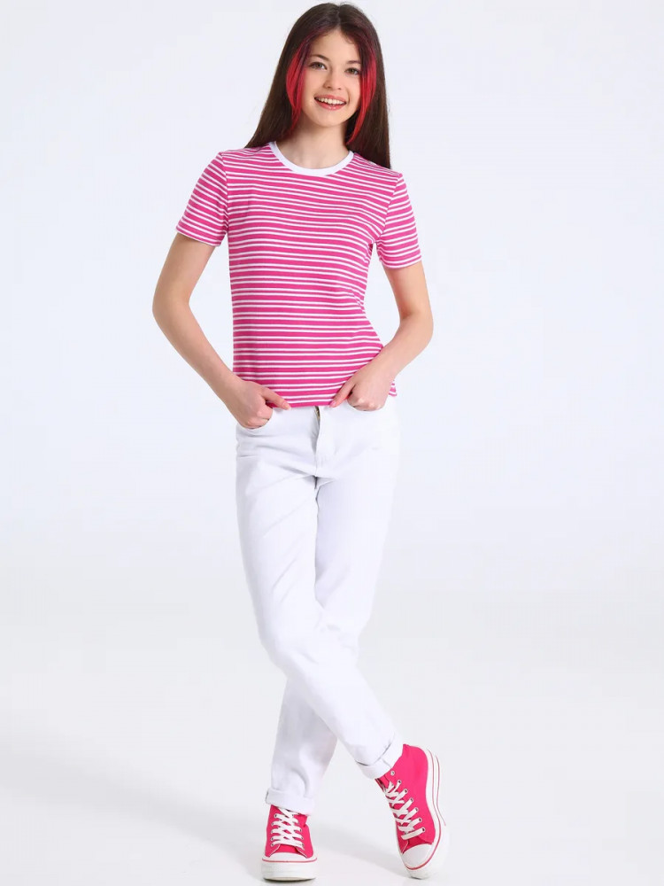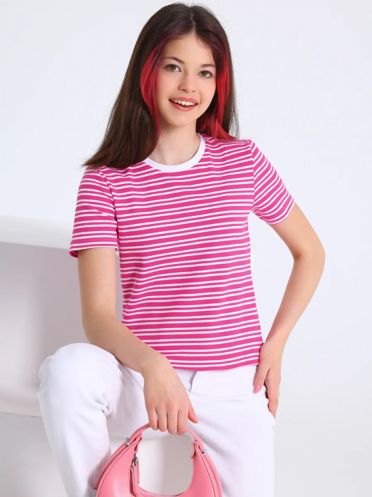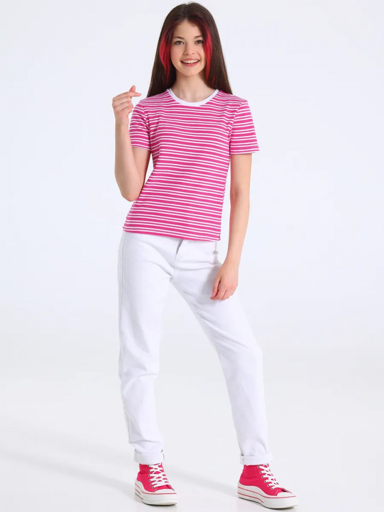 Название цвета: полоска белая на ярко-розовом+белый