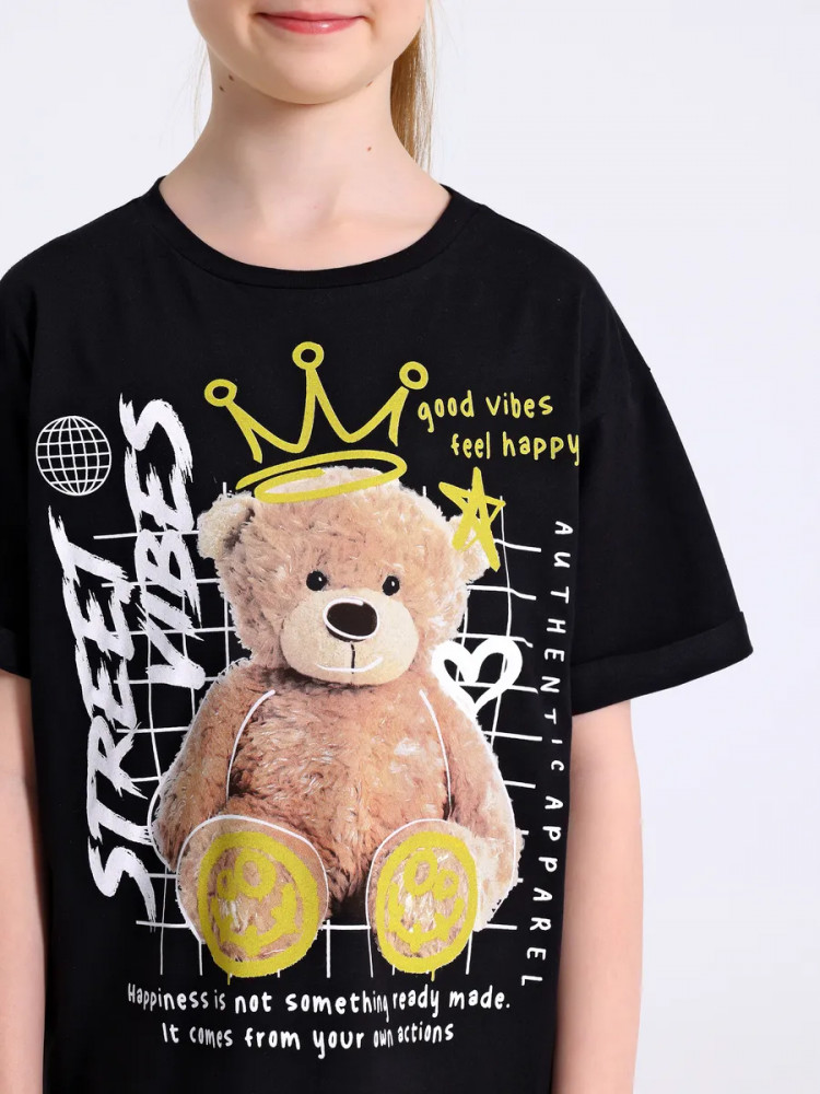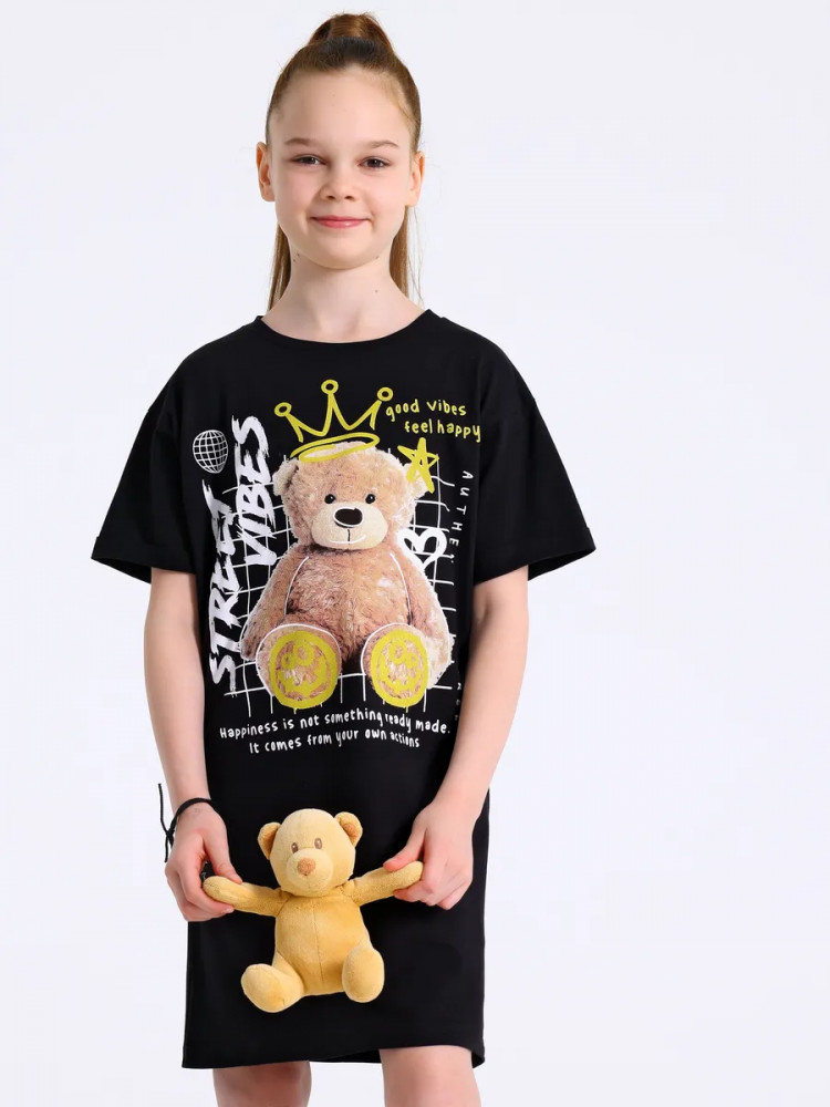 Апрель Платье-футболка для девочек «Мишка в короне»