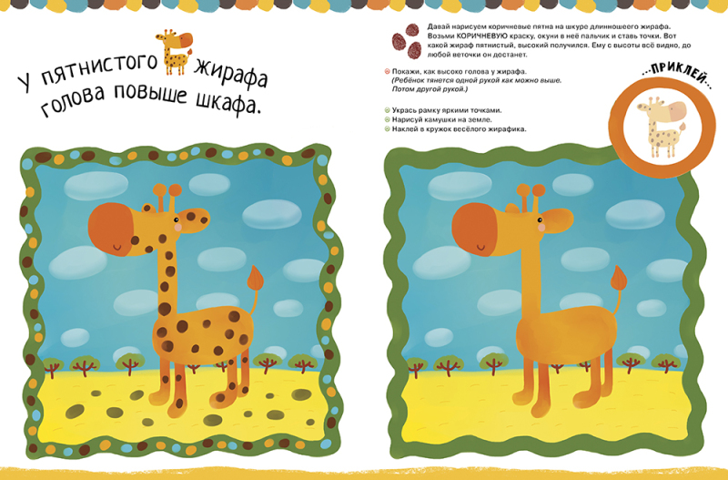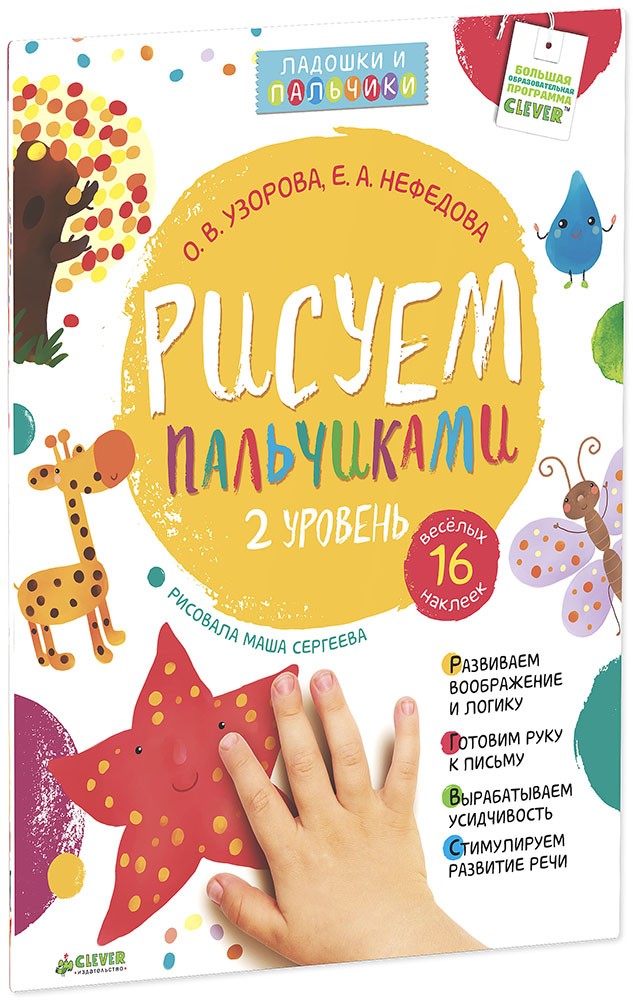 Рисуем пальчиками. Уровень 2 (+ наклейки)В данный момент этот товар отсутствует в продаже. Возможно, у нас найдется аналогичный или похожий товар здесь. Серия: Узорова - Нефедова. Рисуем ладошками и пальчиками Занятия по книге "Рисуем пальчиками. 2 уровень" - это маленький спектакль со стихами, разговорами о картинке, развивающей гимнастикой и идеями для творчества. Детям предлагается послушать двустишие, которое станет темой для дальнейшего занятия. Затем найти образец, на который нужно ориентироваться и эскиз будущего рисунка. Здесь же вместе с ребенком вы можете сделать развивающую гимнастику и найти массу идей для творчества. А после выполнения задания, малыш может наклеить наклейку и перейти к следующим страничкам книги. Для второго уровня разработаны чуть более сложные задания по сравнению с первым уровнем: более сложные рисунки, а в конце книжки малыш будет на одном занятии использовать целую радугу красок. |