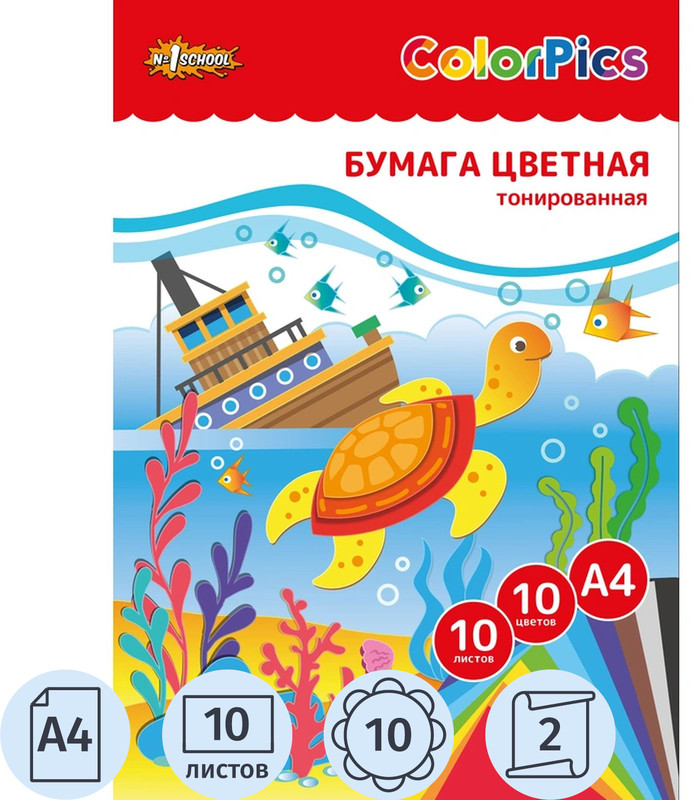 Серия: Школьные товары ColorPics Набор офсетной, тонированной, двусторонней (10 цветов на 10 листах) цветной бумаги для создания аппликаций, изготовления поделок. Тонированная бумага прокрашена в массе, благодаря этому при складывании бумаги на сгибе цвет сохраняется, отлично подходит для создания поделок в технике оригами. Цвета в наборе: синий, черный, коричневый, розовый неоновый, оранжевый, зеленый интенсивный, желтый интенсивный, красный интенсивный, голубой интенсивный, сиреневый. |